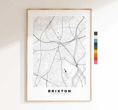 Brixton Map Print - Minimalist City Map Poster - Map Art - London, UK - Brixton Print - Brixton Poster - Different Colours Available