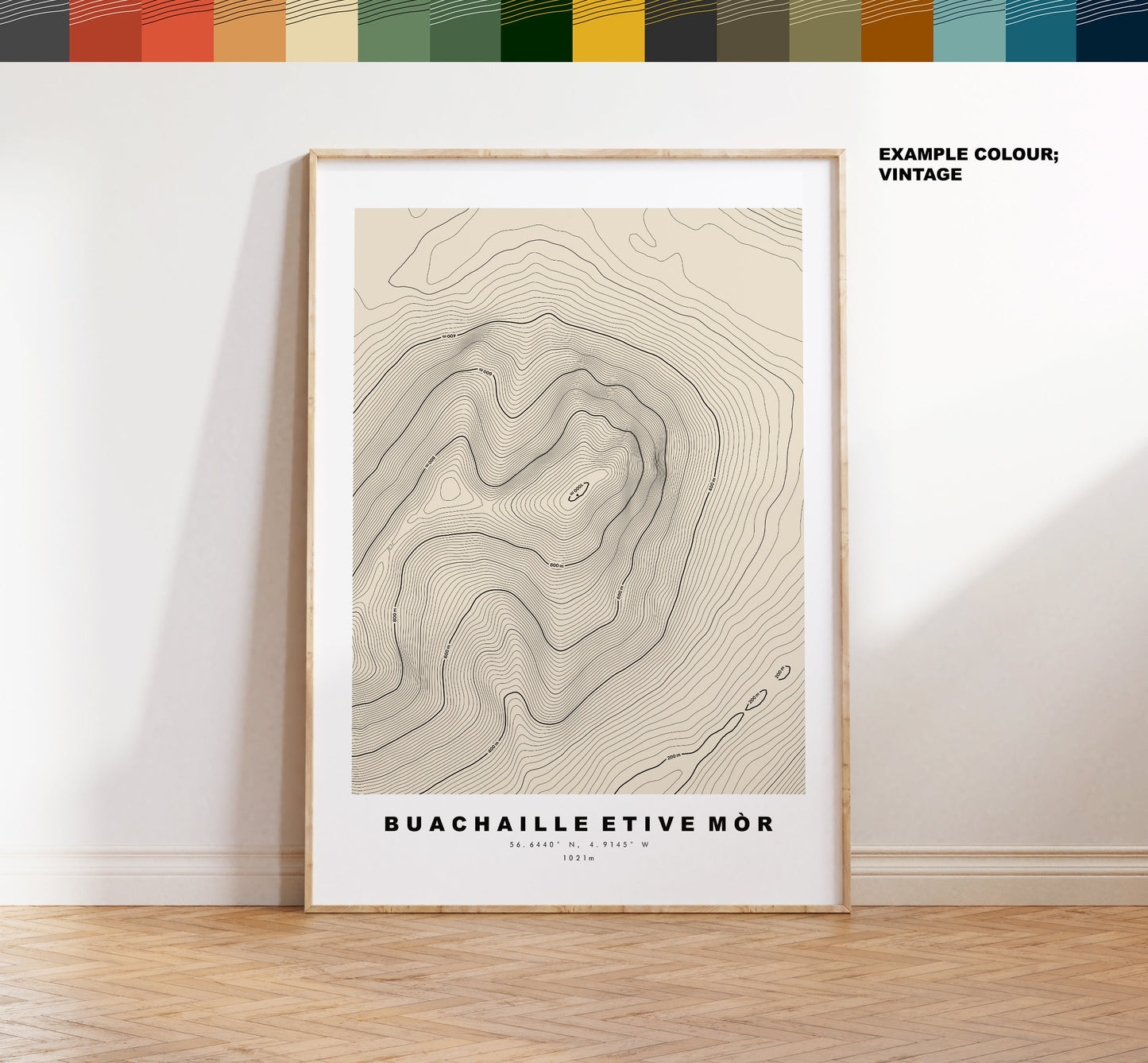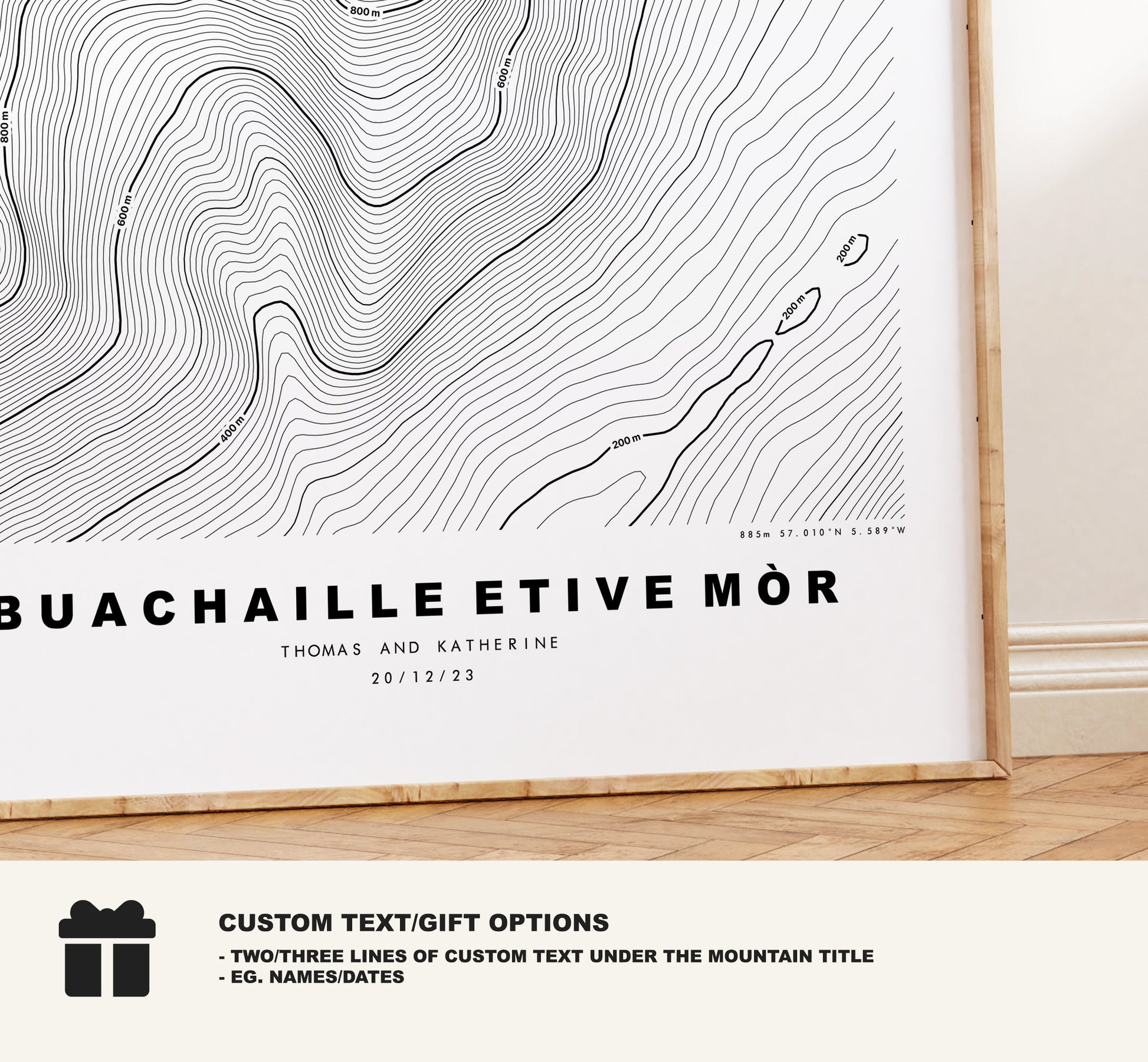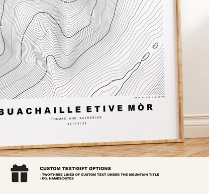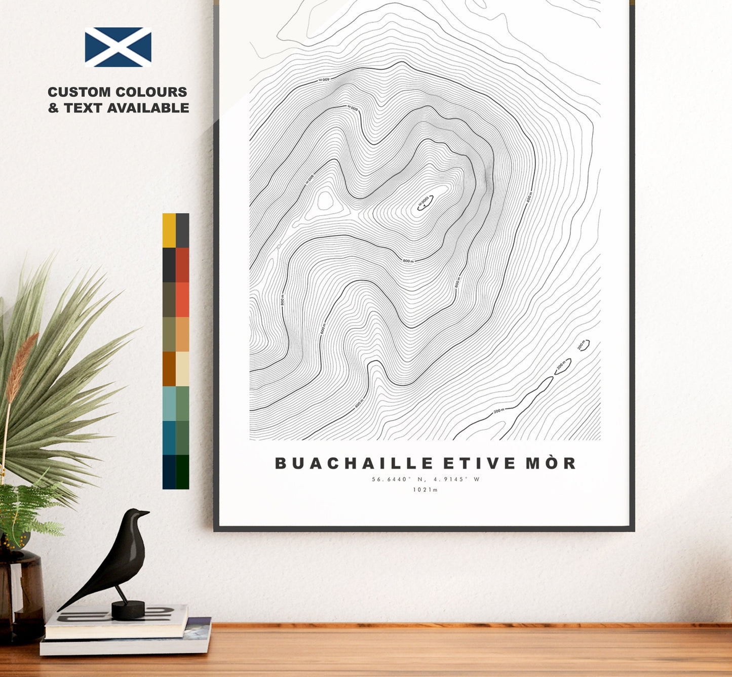 Buachaille Etive Mor Print - Contour Map - Poster - Scotland - Topographic Map - Print - Wall Art - Mountain Map - Munros - Topography