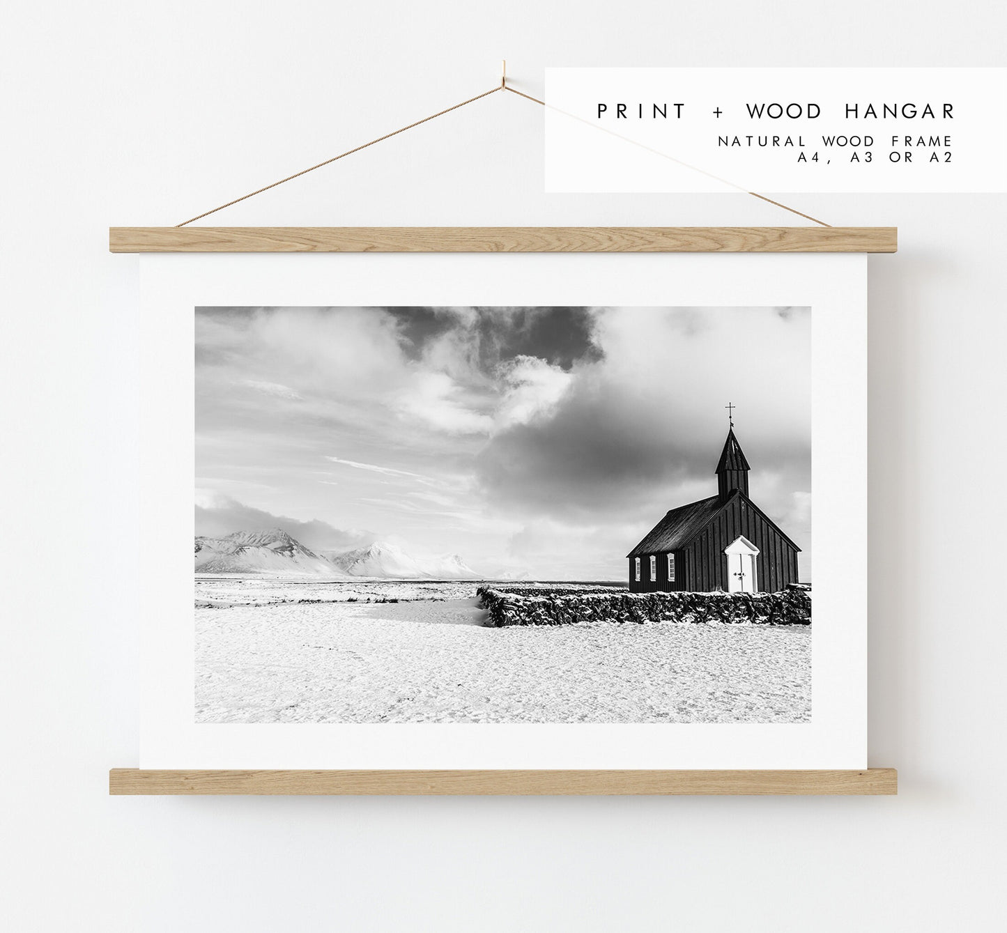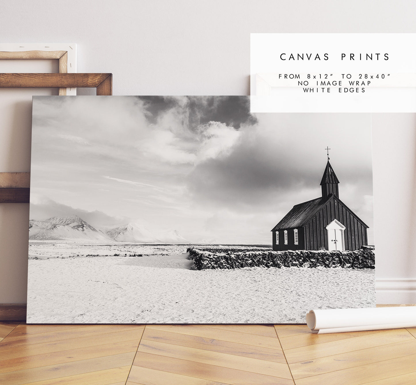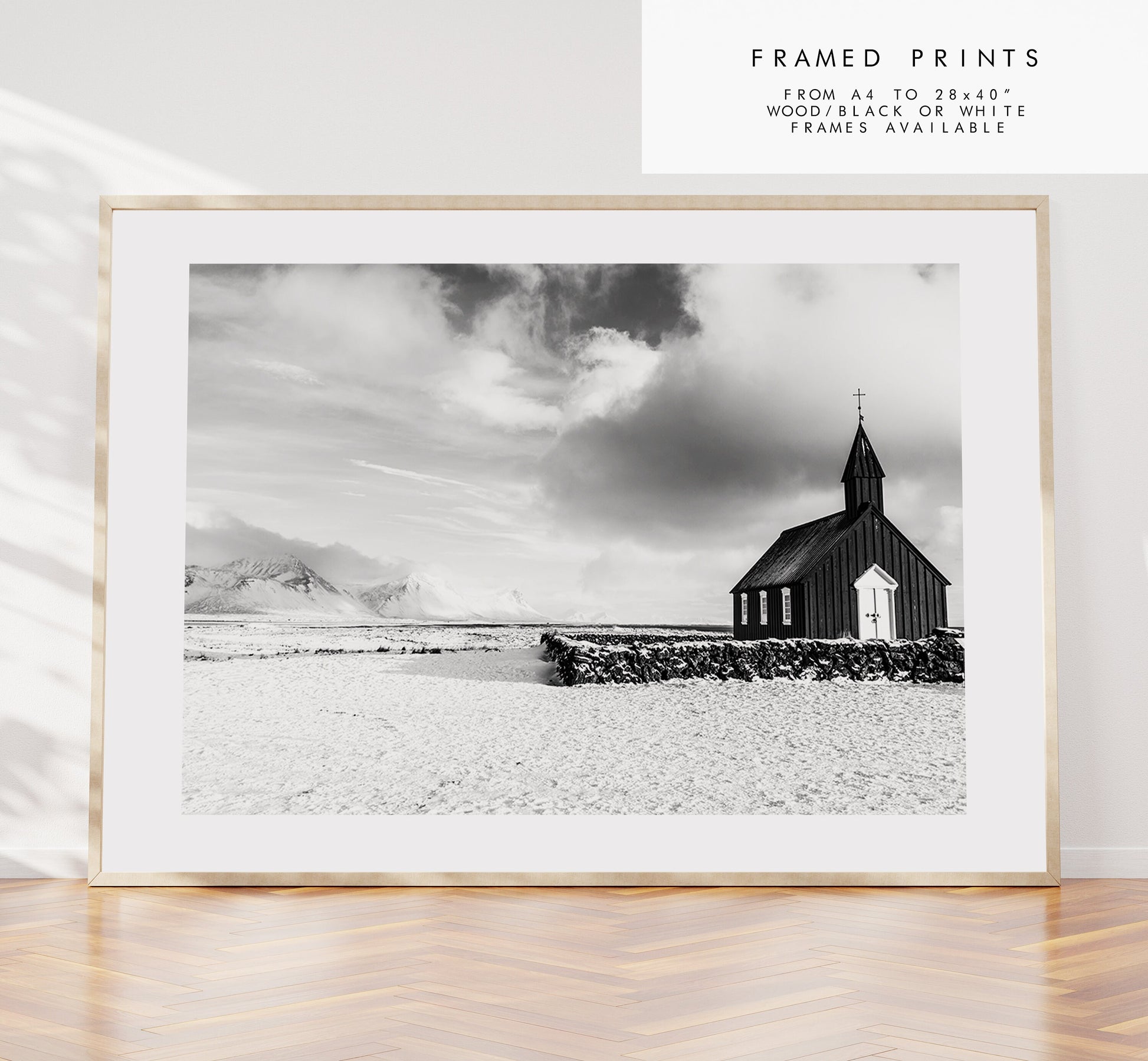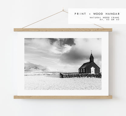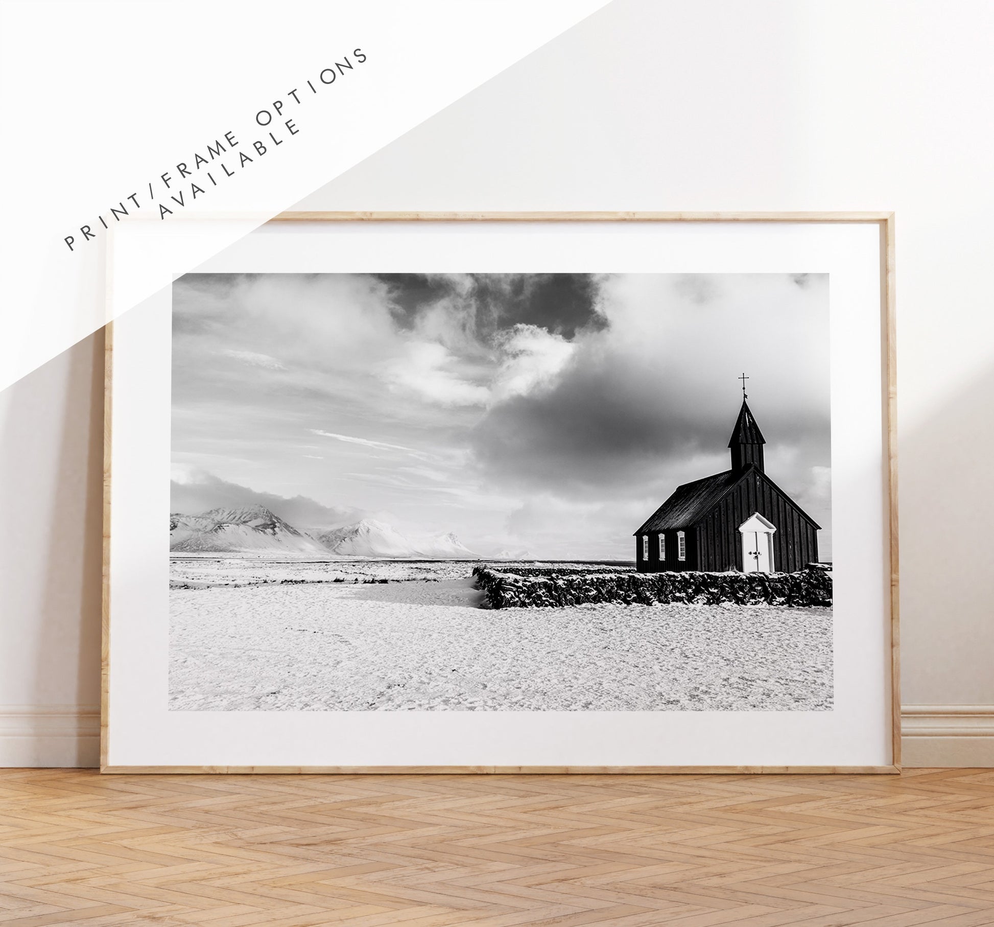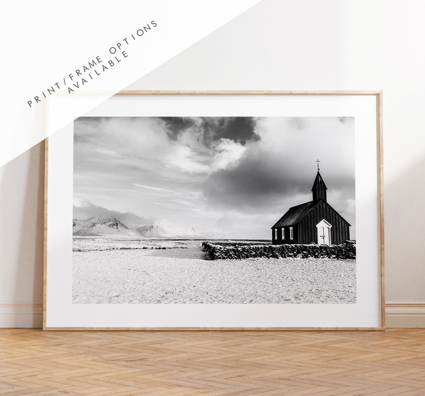 Budir Church - Iceland Photography Print - Iceland Wall Art - Iceland Poster - Black and White Photography - Landscape - Architecture - Art