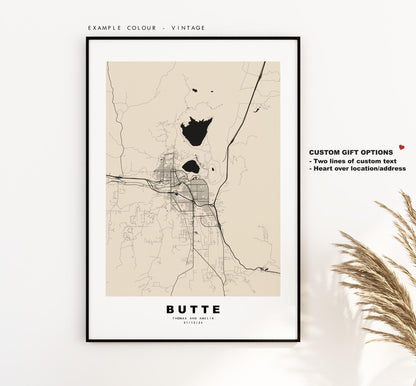 Butte Map Print - City Map Poster - Map Art - USA City Maps - Butte Print - Butte Poster - Minimalist City Map - Montana