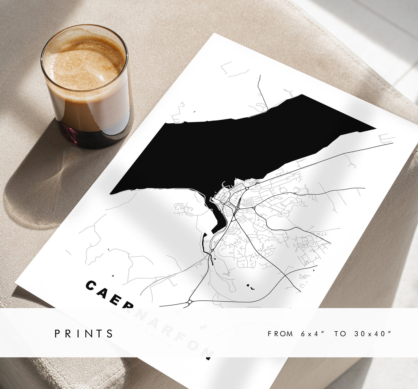 Caernarfon Map Print - Minimalist City Map Poster - Map Art - Wales - UK - Caernarfon Print - Caernarfon Poster - Different Colours Available