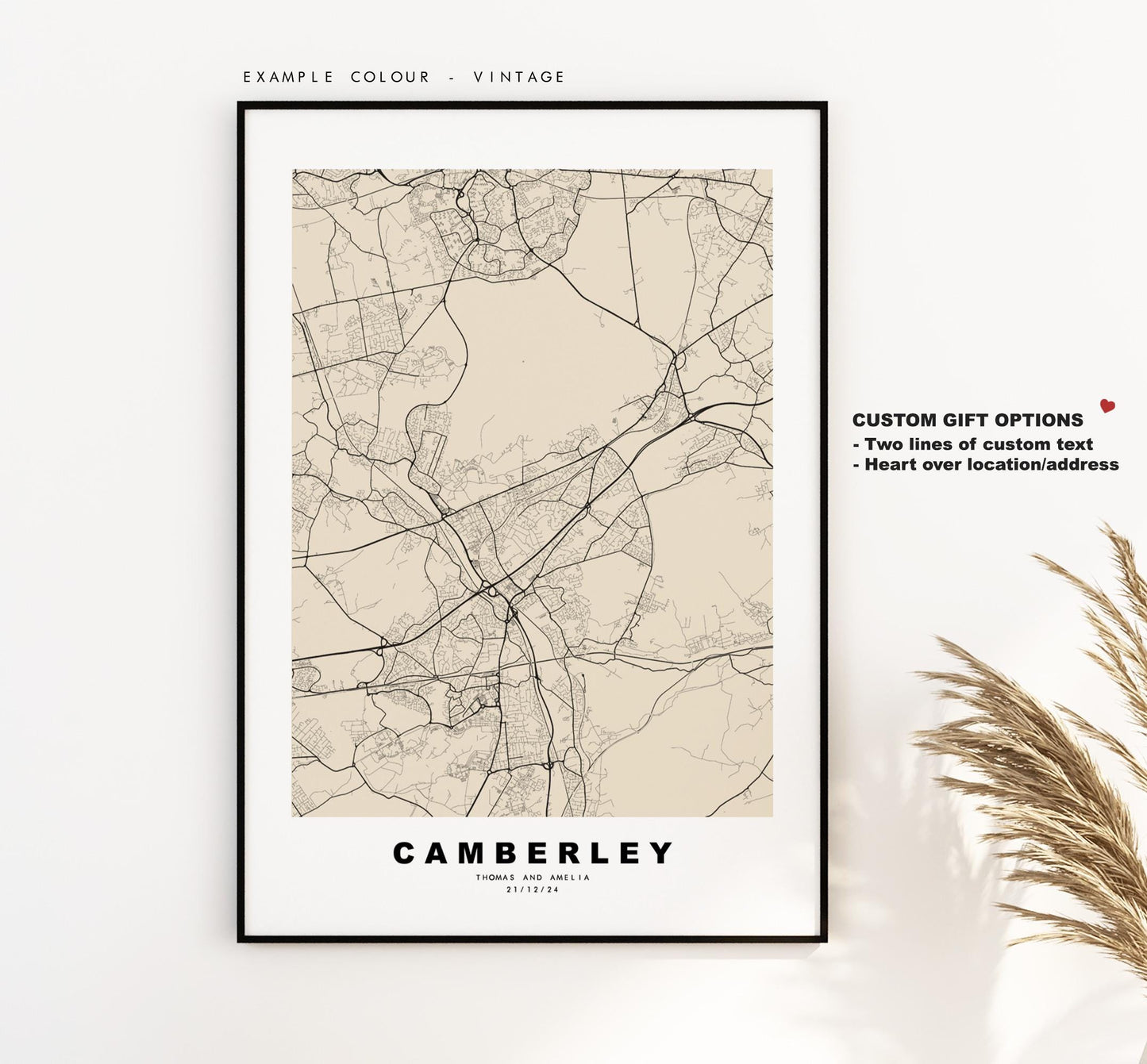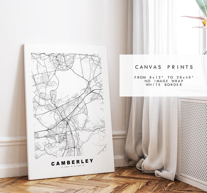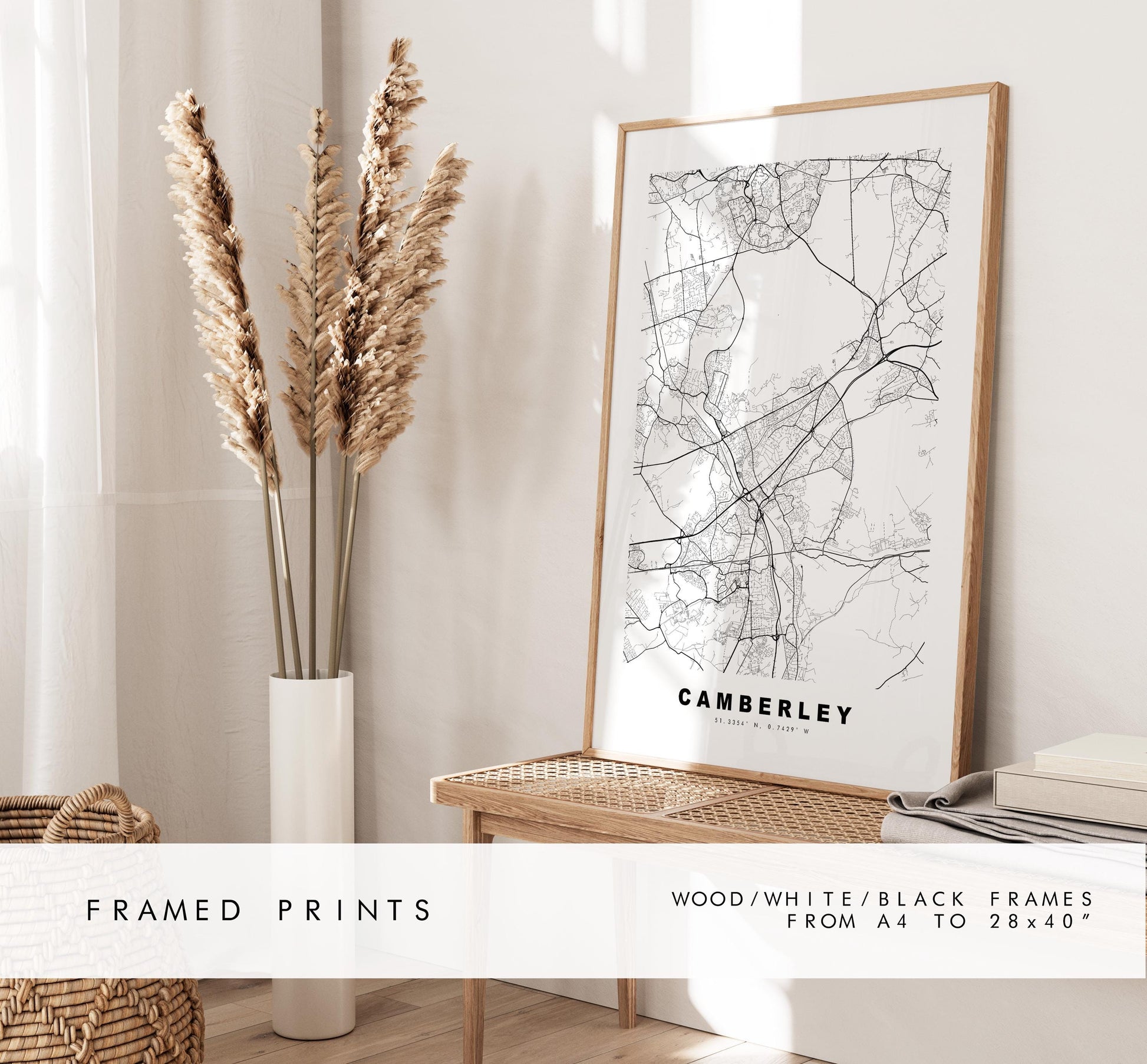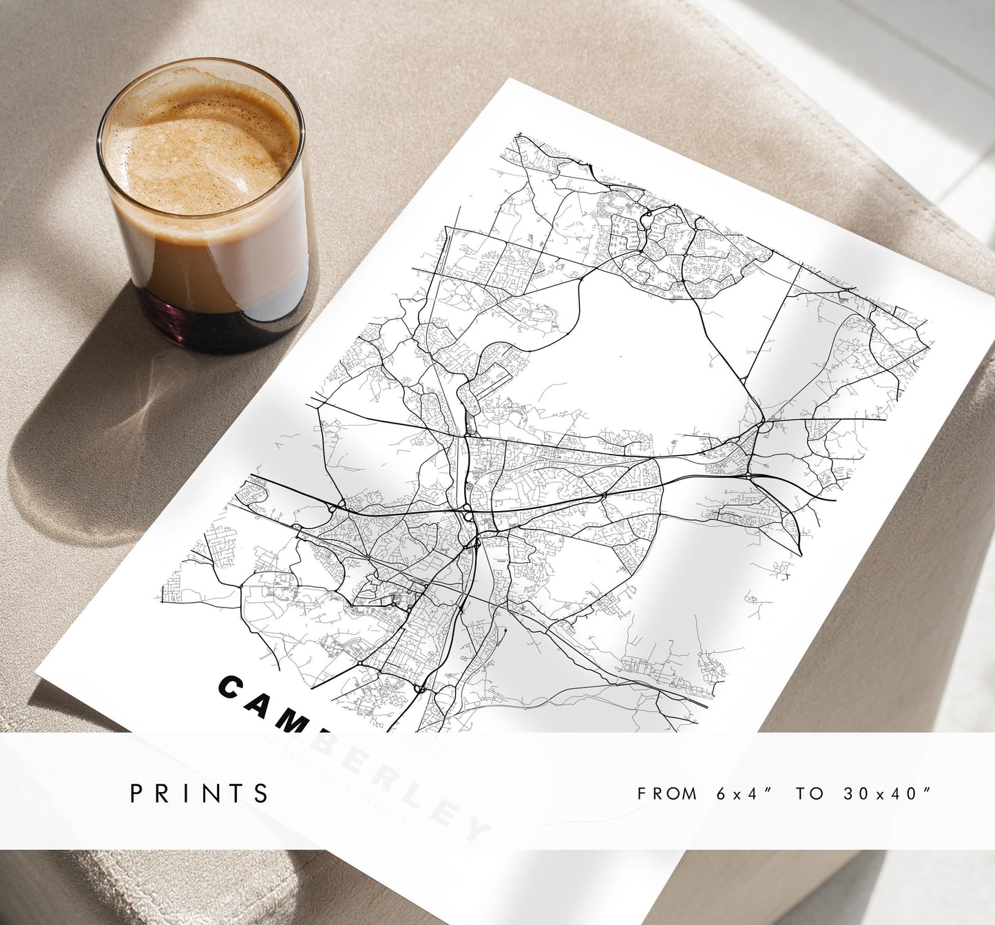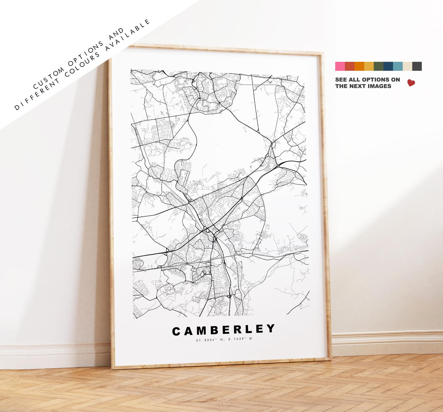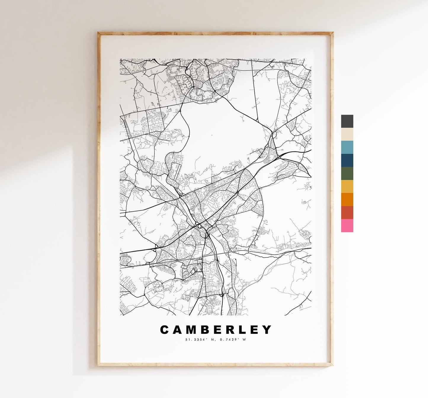 Camberley Map Print - Minimalist City Map Poster - Map Art - UK - Camberley Print - Camberley, Surrey - Different Colours Available