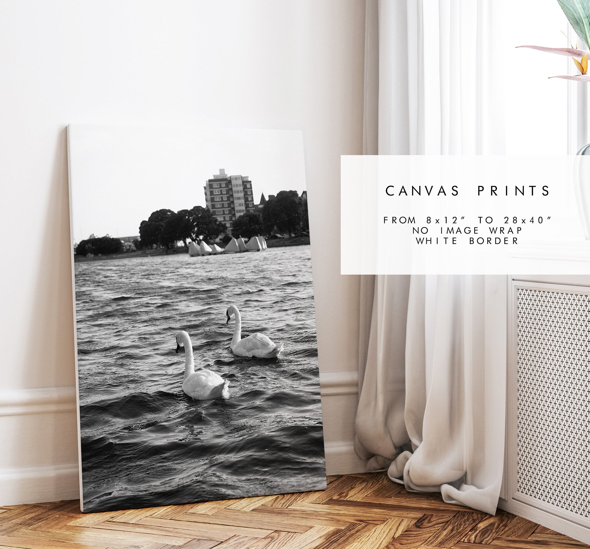 Canoe Lake Print - Photography Print - Portsmouth and Southsea Prints - Wall Art - Frame and Canvas Options - Portrait - BW