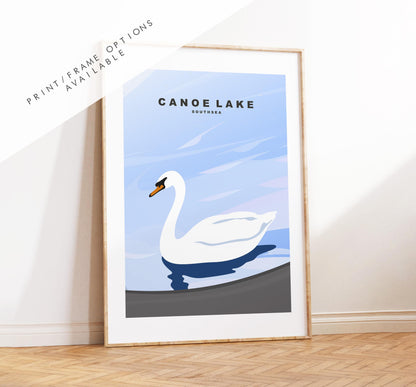 Canoe Lake Travel Poster - Featuring an original illustration by us and inspired by retro travel posters these prints make for a great addition to any home and perfect reminder of your favourite places!