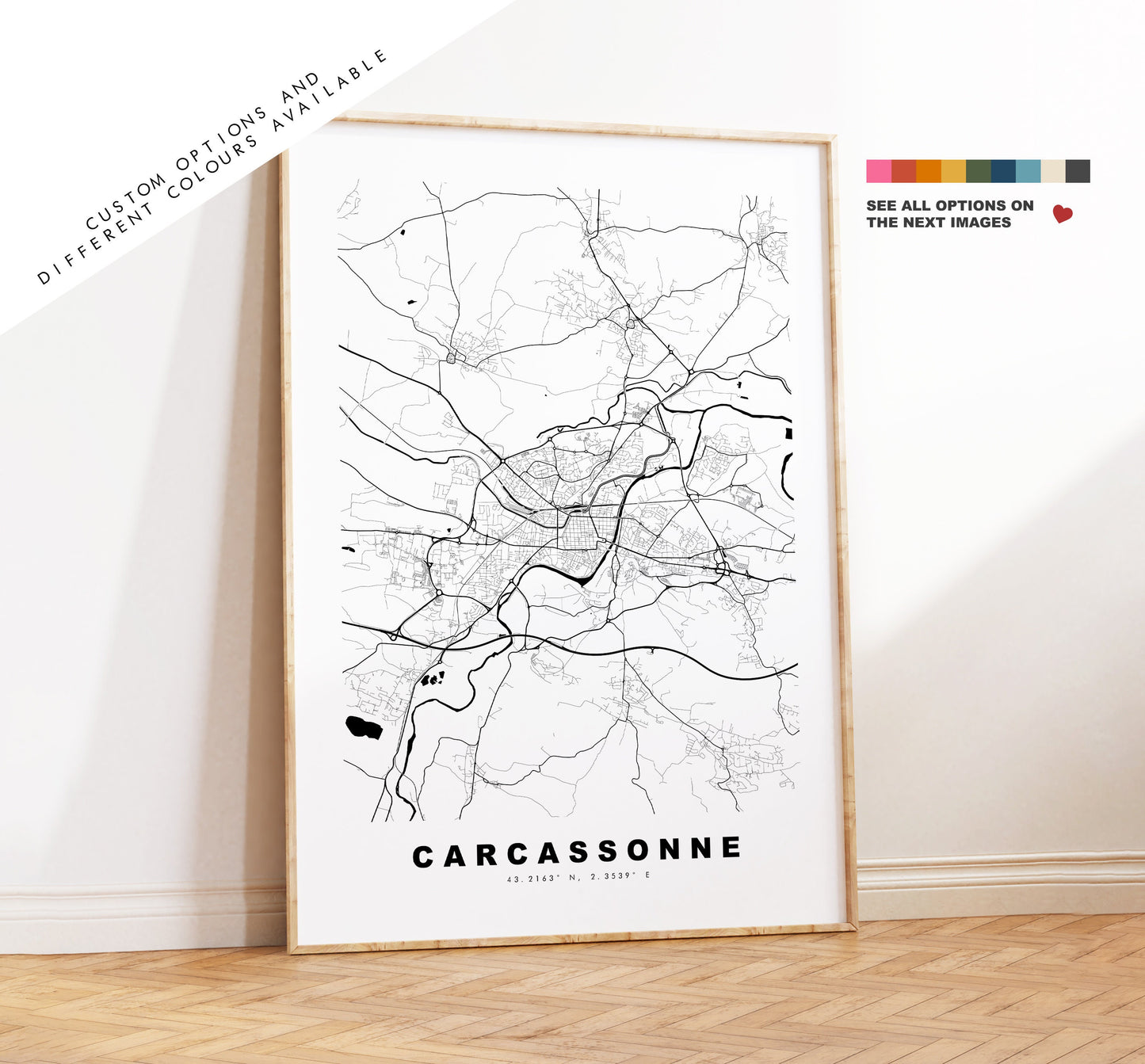 Carcassonne Map Print - City Map Poster - Map Wall Art - France City Maps - Carcassonne Print - Carcassonne Poster - Minimalist City Map