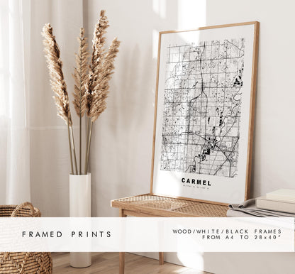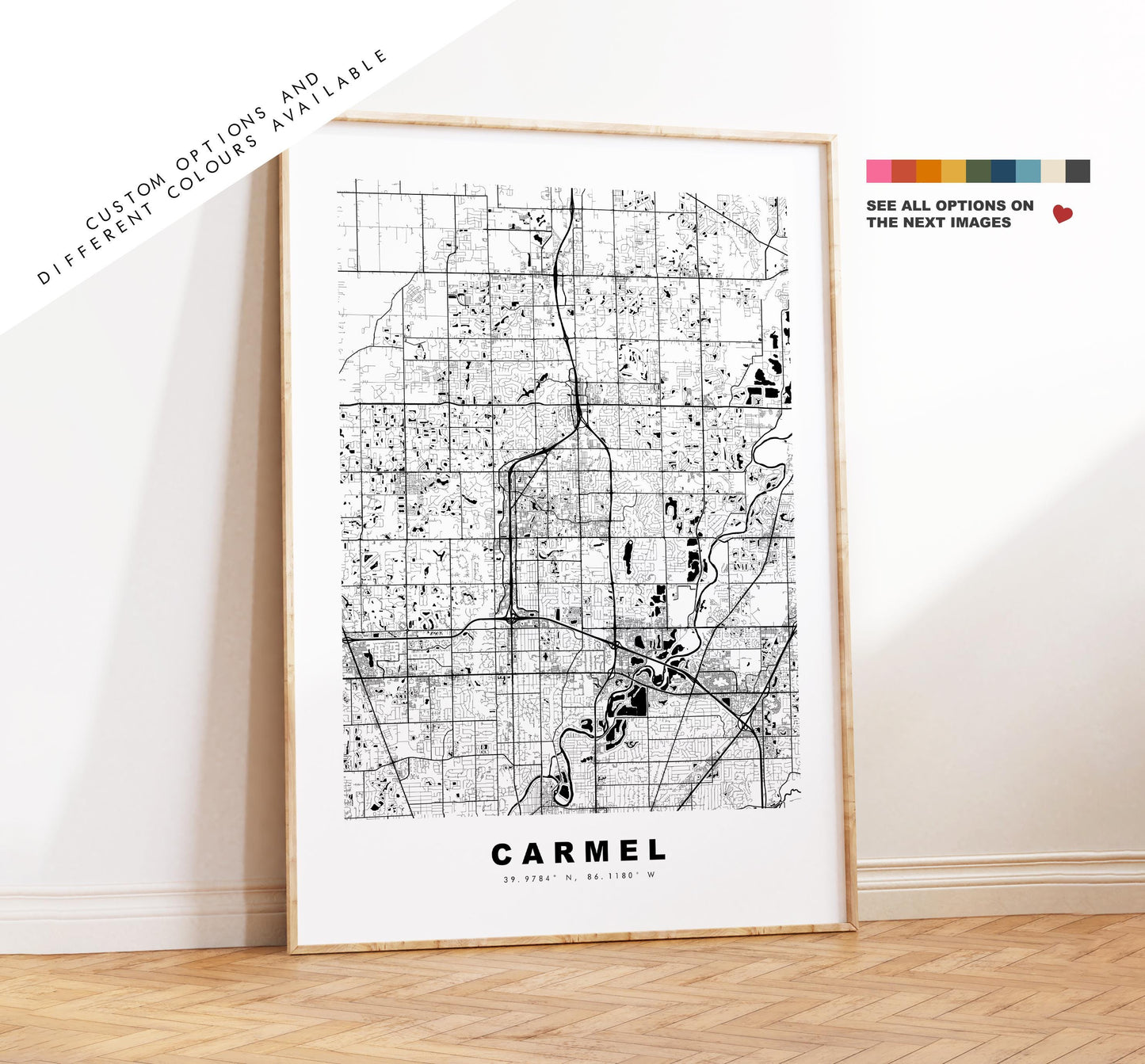 Carmel Map Print - City Map Poster - Map Art - USA City Maps - Carmel Print - Carmel Poster - Minimalist City Map - Indiana