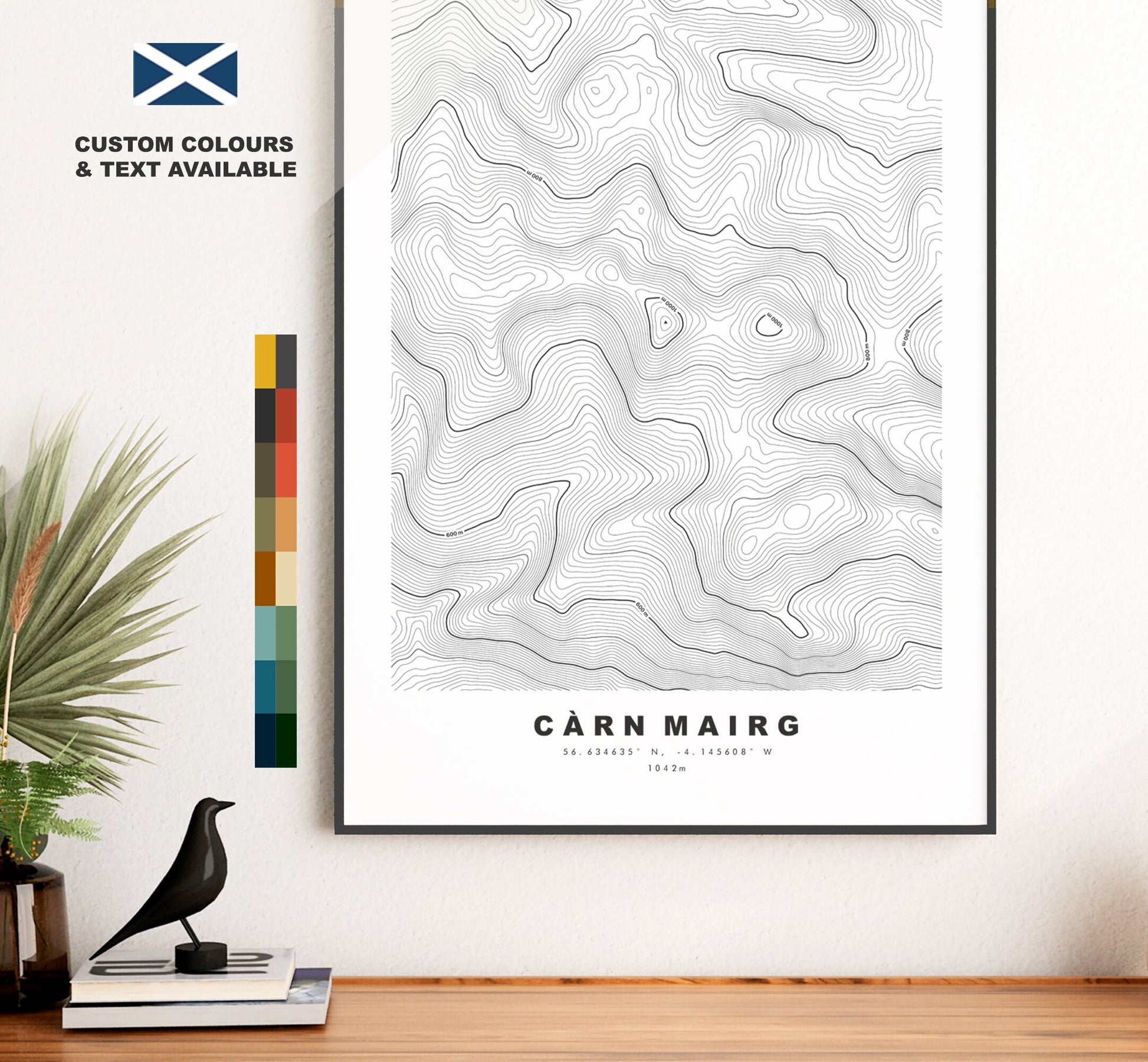 Carn Mairg Print - Contour Map - Carn Mairg Poster - Scotland - Topographic Map - Print - Wall Art - Cร rn na Mairc Map