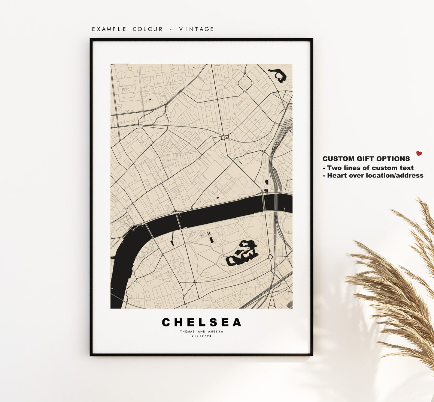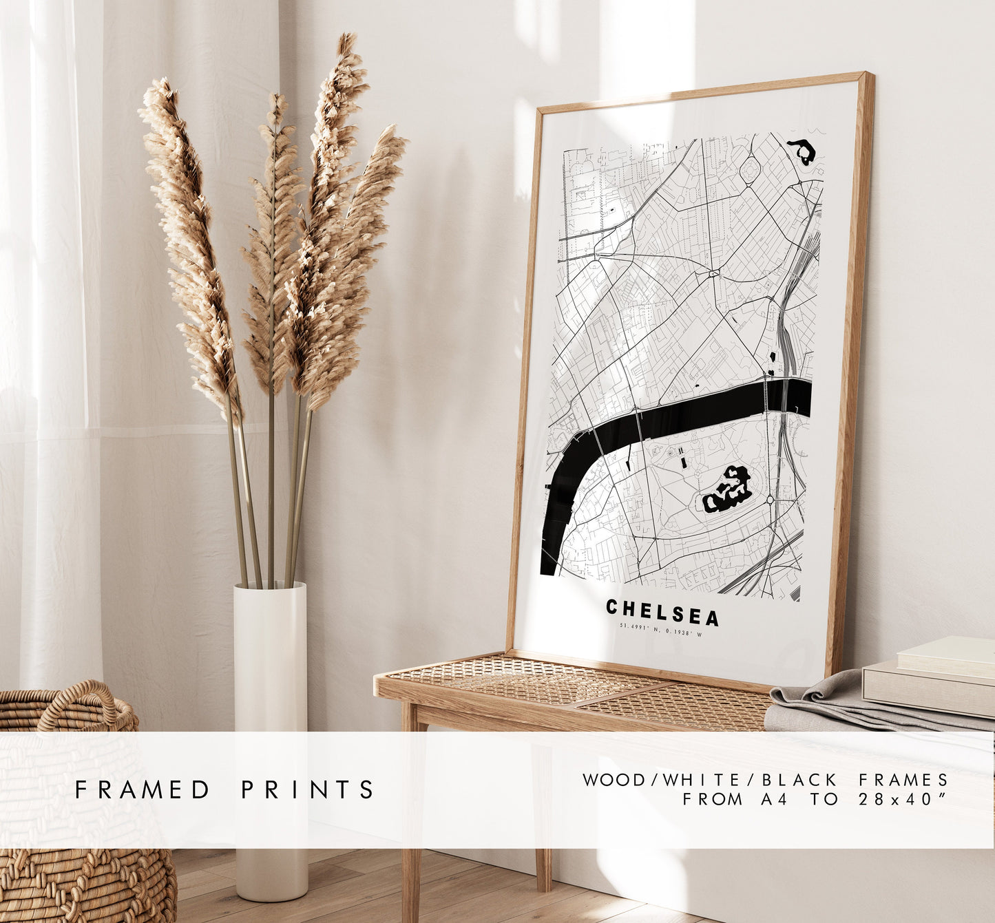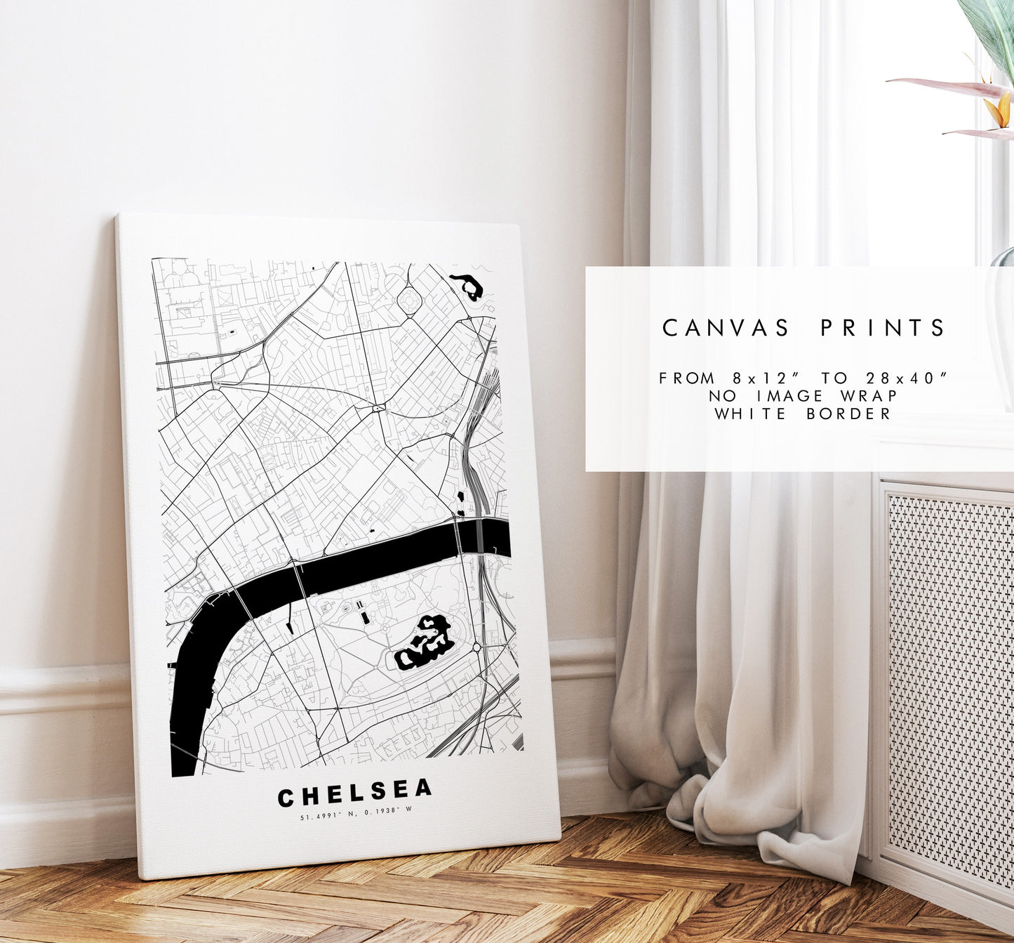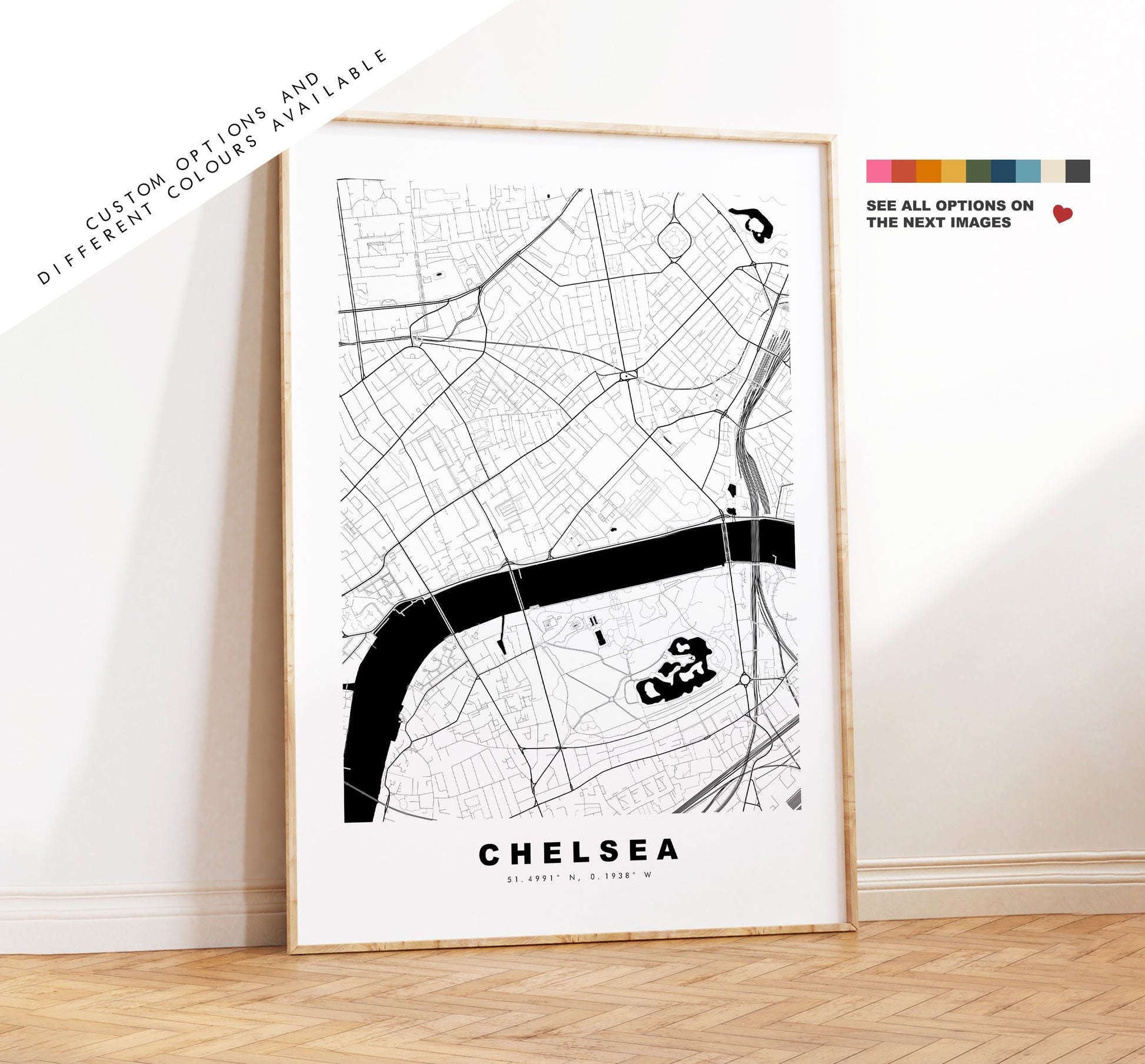 Chelsea Map Print - Minimalist City Map Poster - Map Art - London, UK - Chelsea Print - Chelsea Poster - Different Colours Available