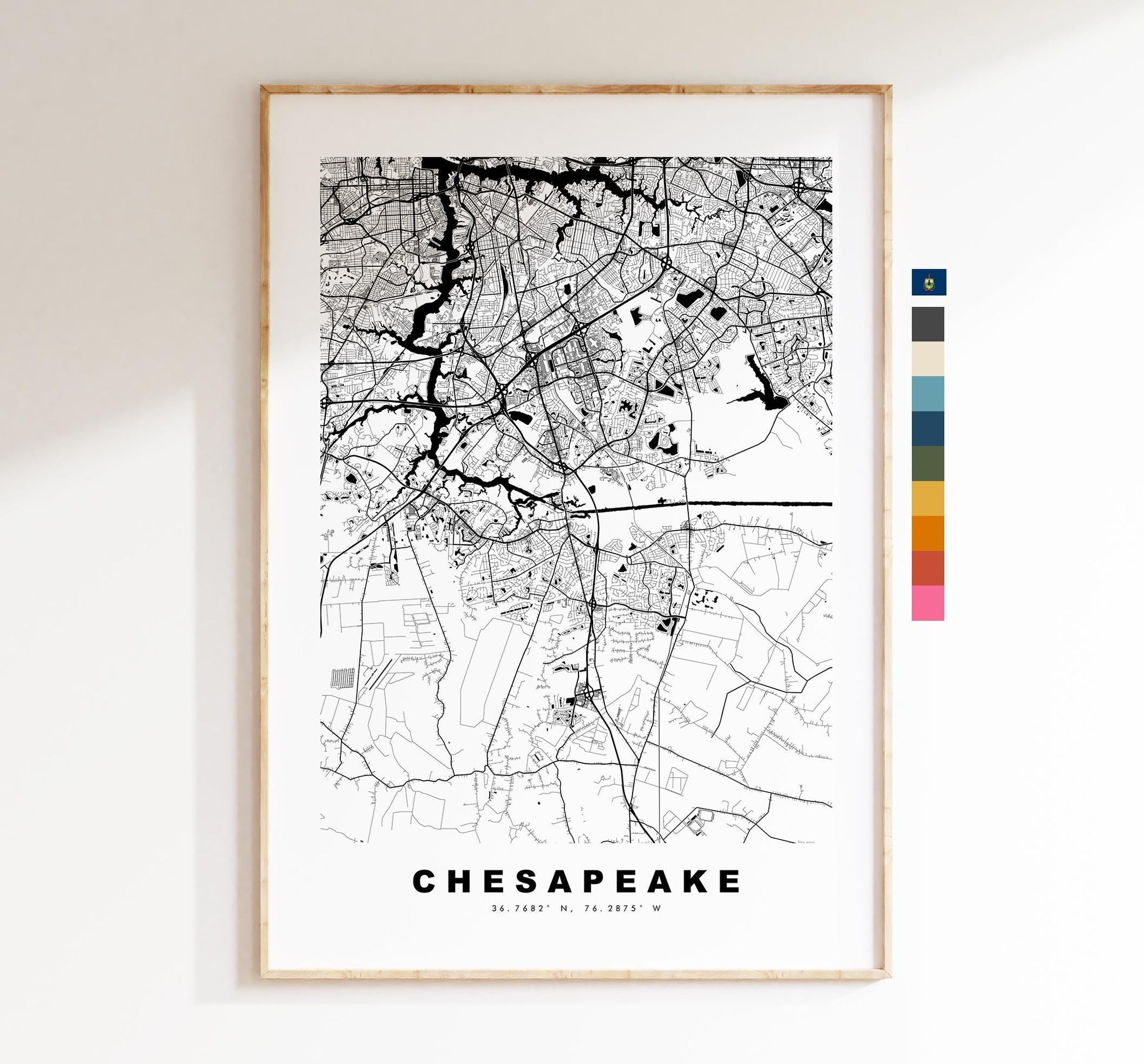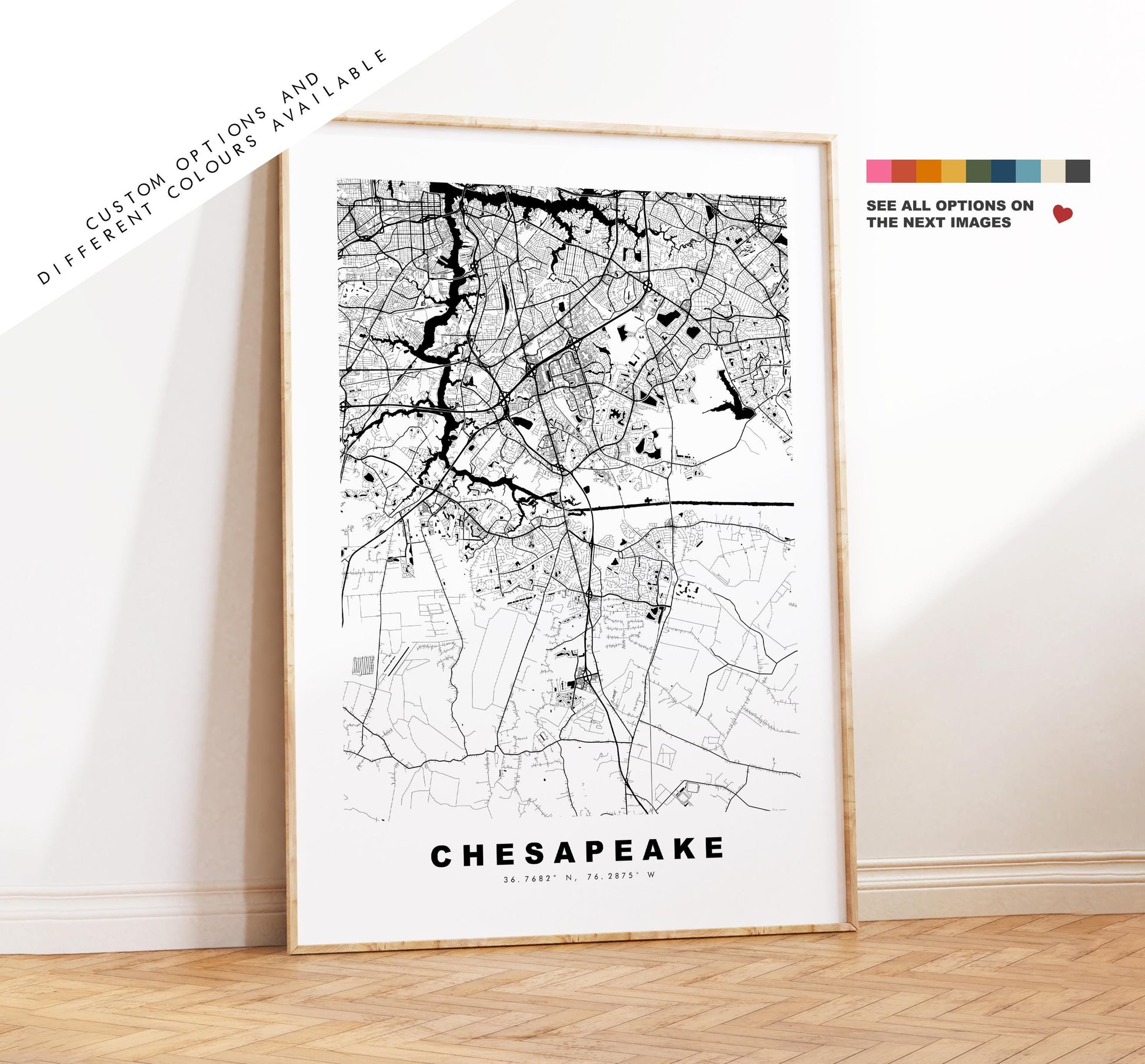 Chesapeake Map Print - City Map Poster - Map Art - USA City Maps - Chesapeake Print - Poster - Minimalist City Map - Virginia