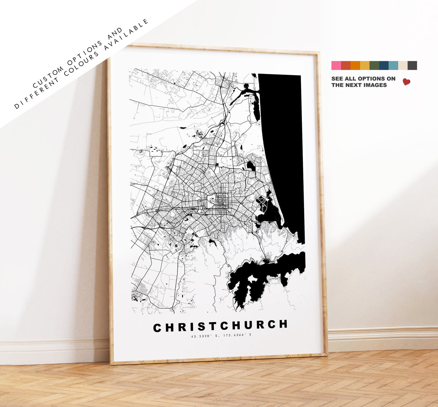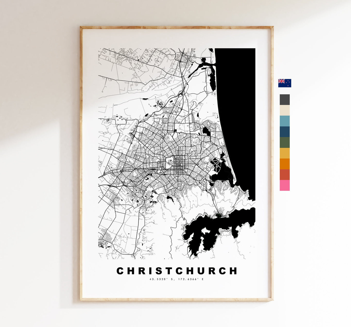 Christchurch Map Print - City Map Poster - Map Art - New Zealand City Maps - Christchurch Print - Christchurch Poster - Minimalist City Map
