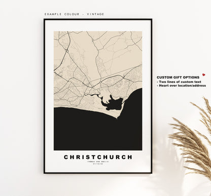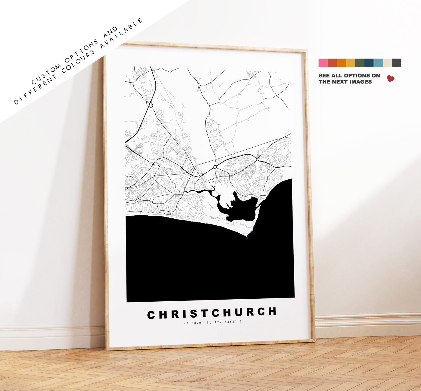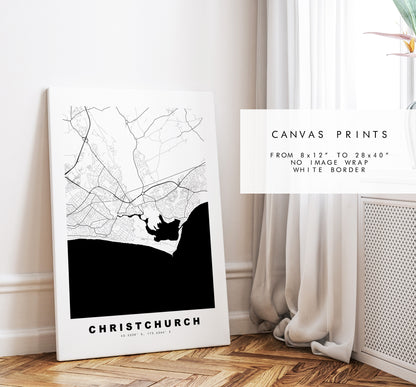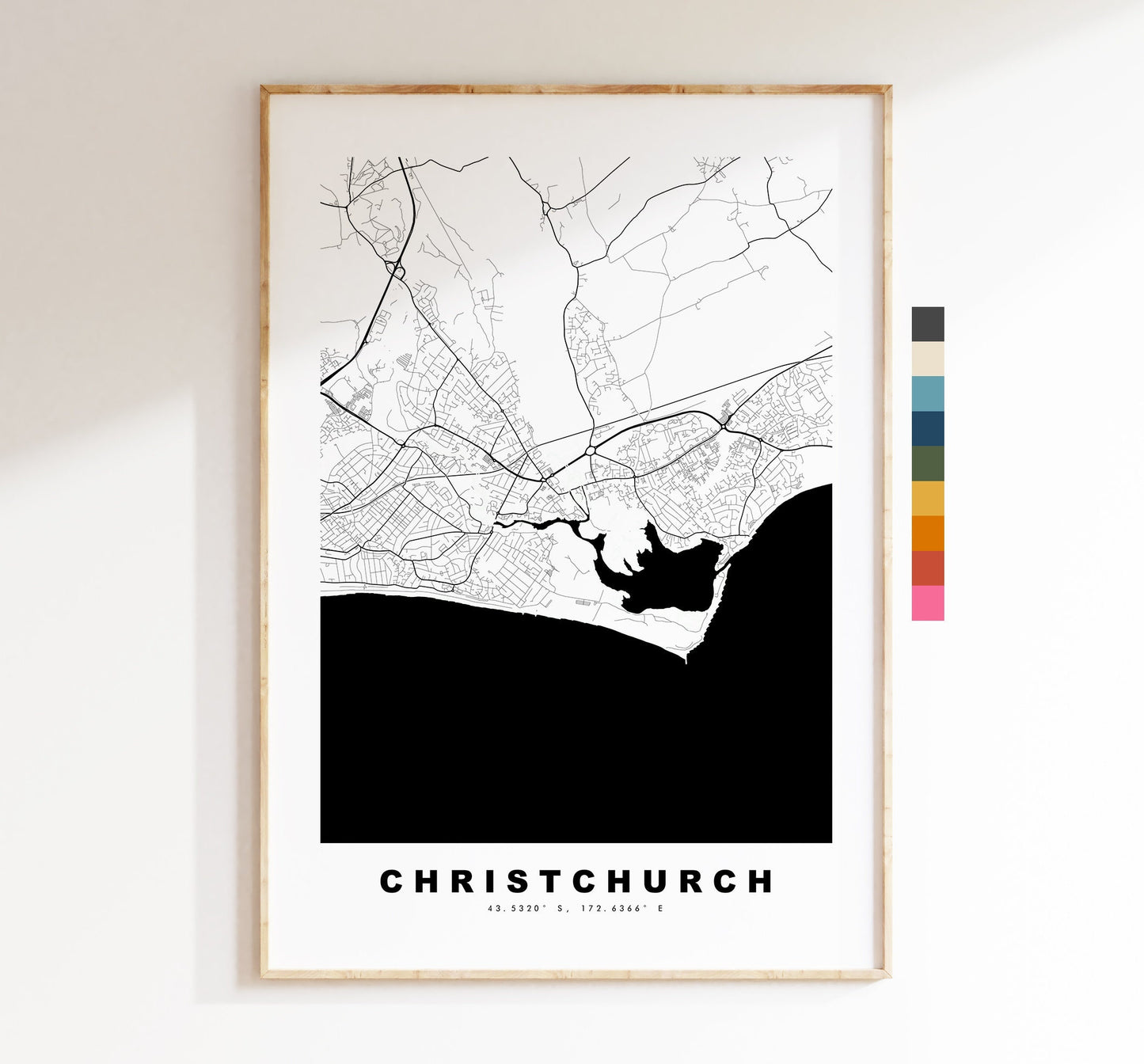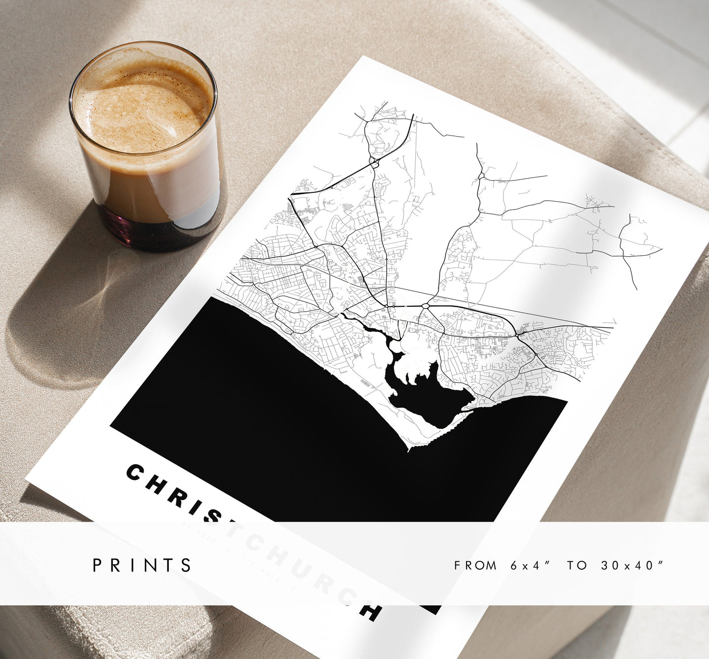 Christchurch Map Print - Minimalist City Map Poster - Map Art - UK - Christchurch Print - Christchurch Poster - Different Colours Available
