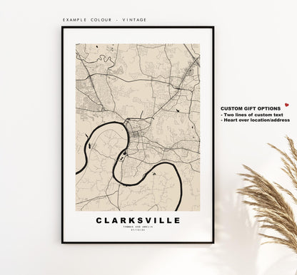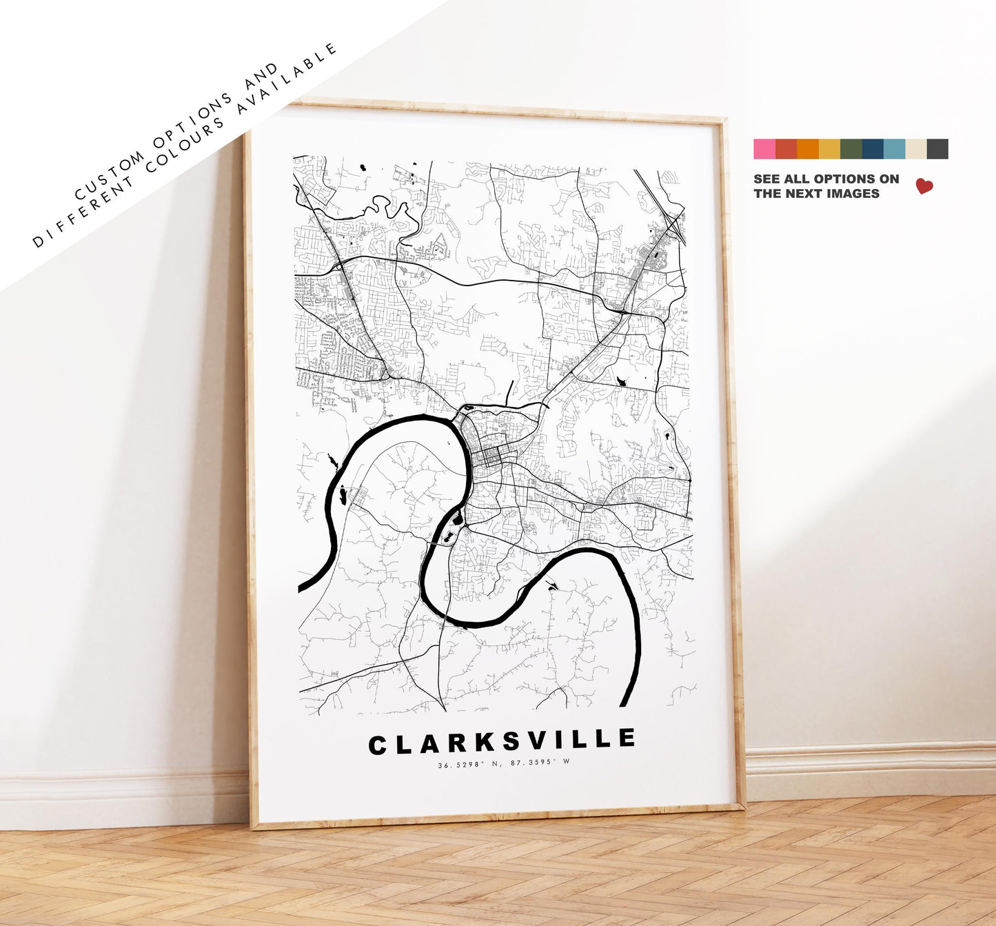 Clarksville Map Print - City Map Poster - Map Art - USA City Maps - Clarksville Print - Clarksville Poster - Minimalist City Map - Tennessee