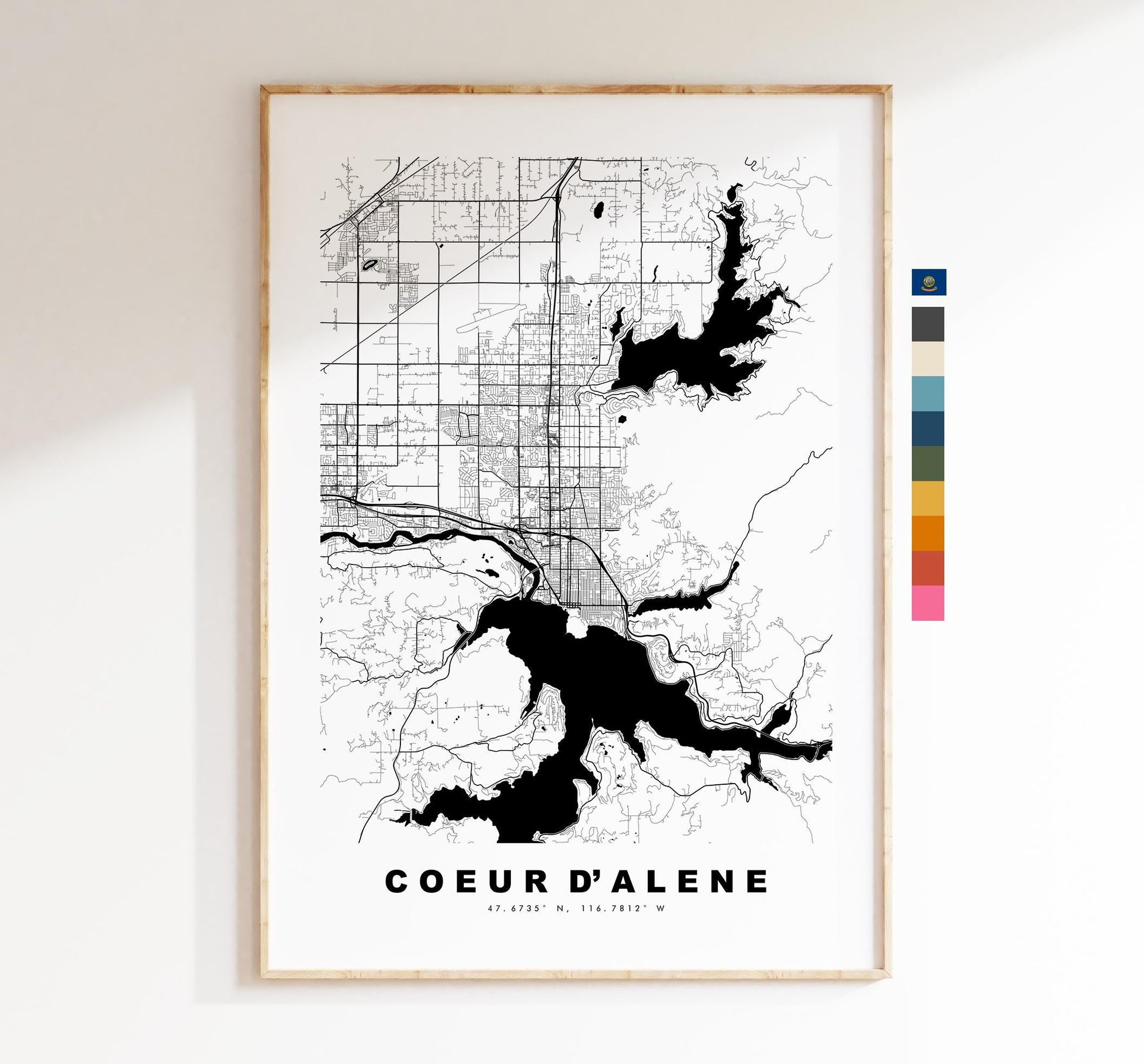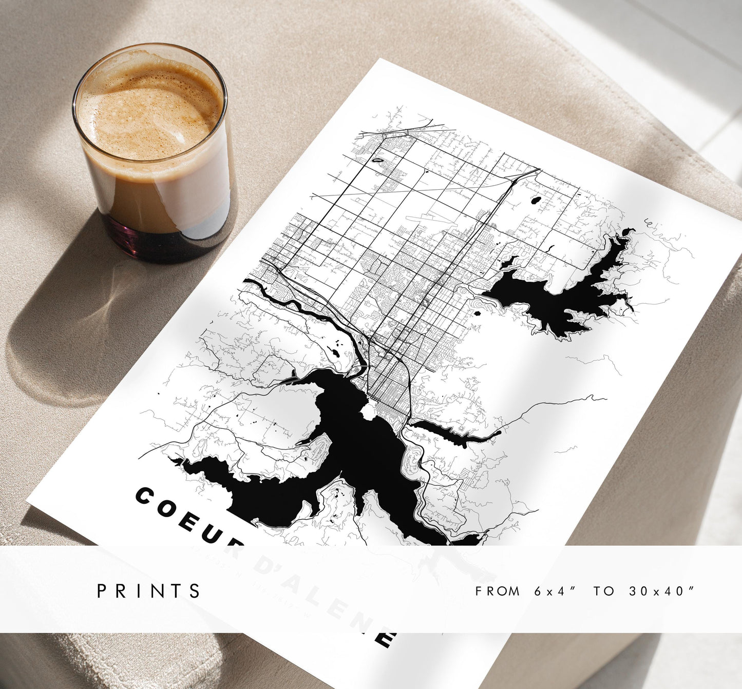 Couer d'Alene Map Print - City Map Poster - Map Art - USA City Maps - Couer d'Alene Print - Poster - Minimalist City Map - Idaho