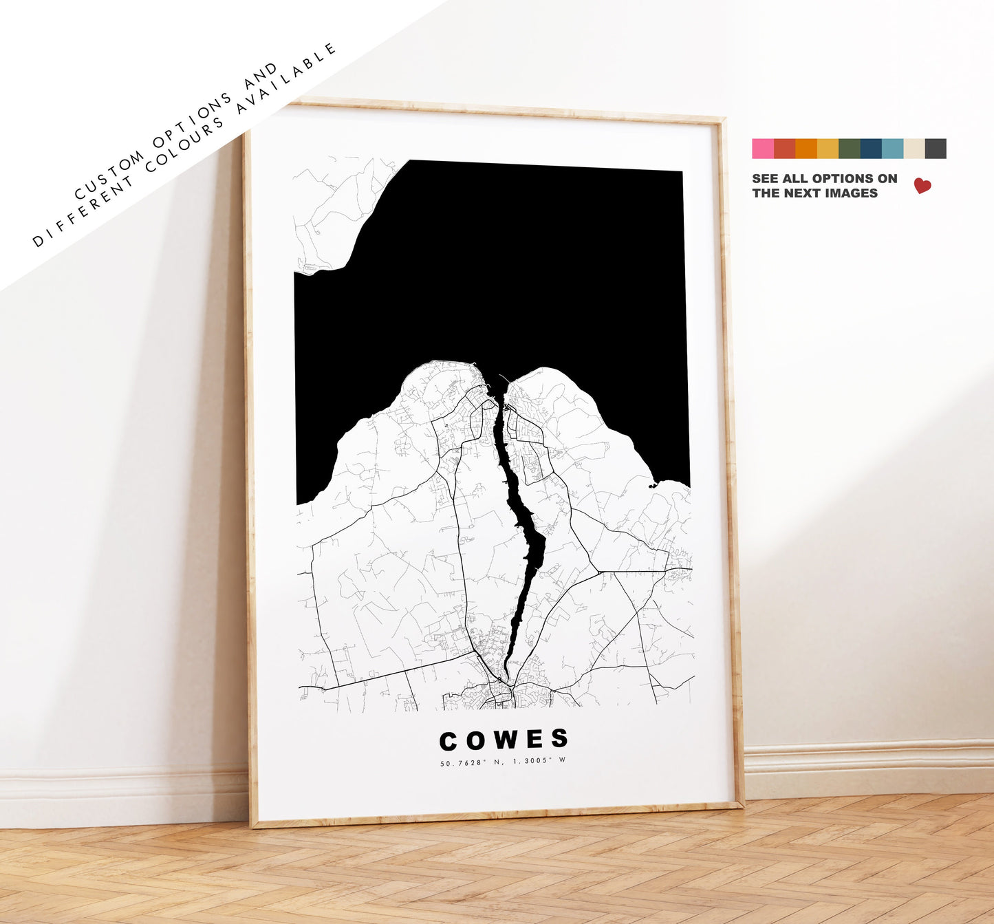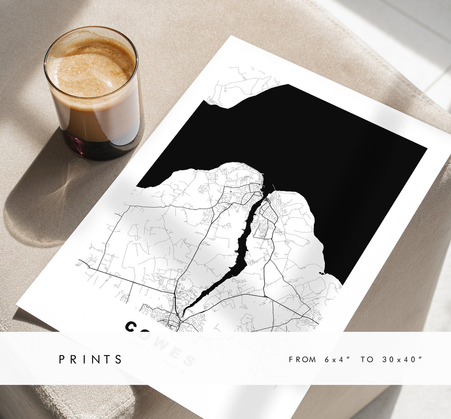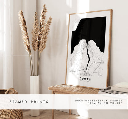 Cowes Map Print - Minimalist City Map Poster - Map Wall Art - UK - Cowes Print - Cowes Poster - Different Colours Available