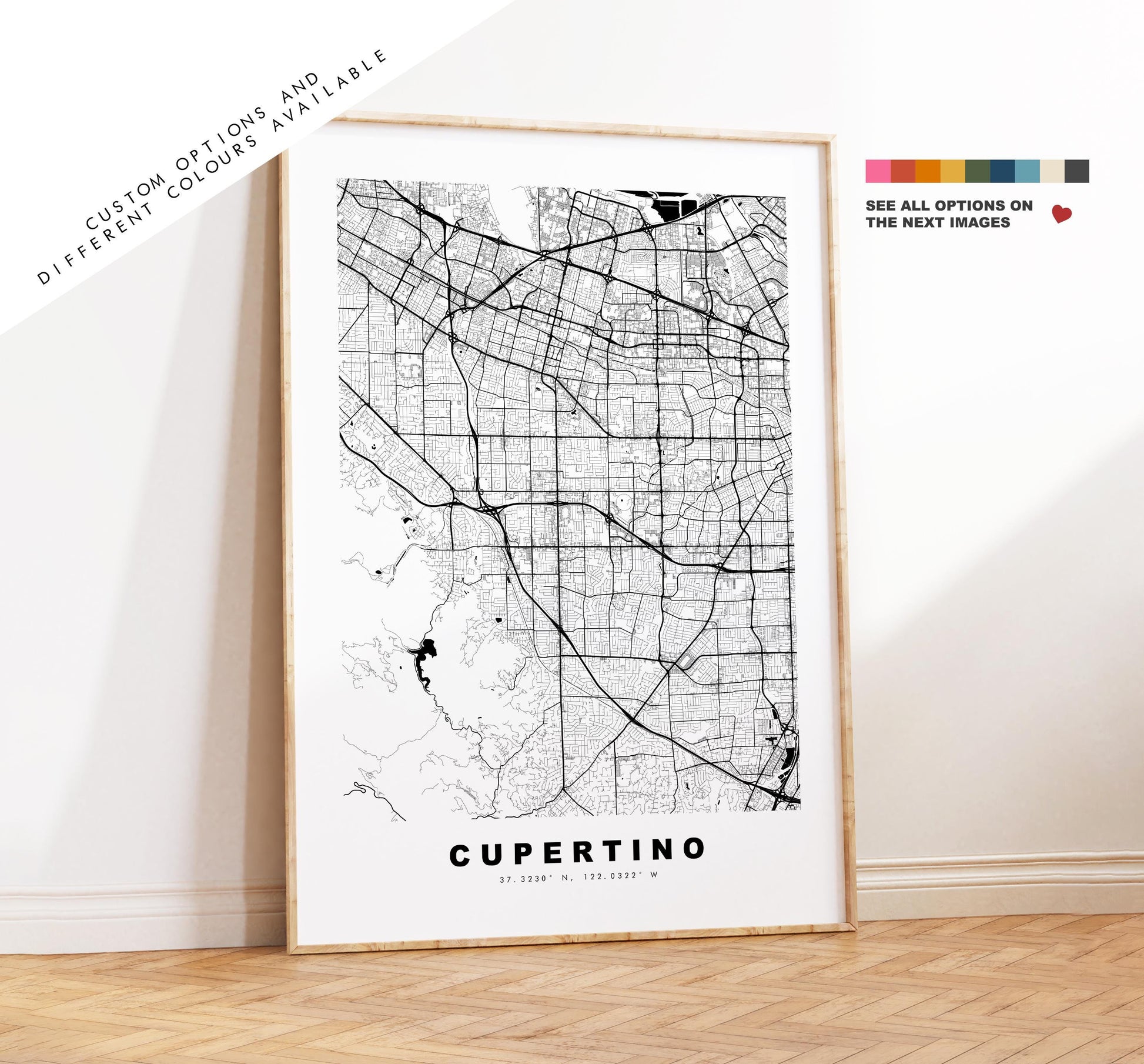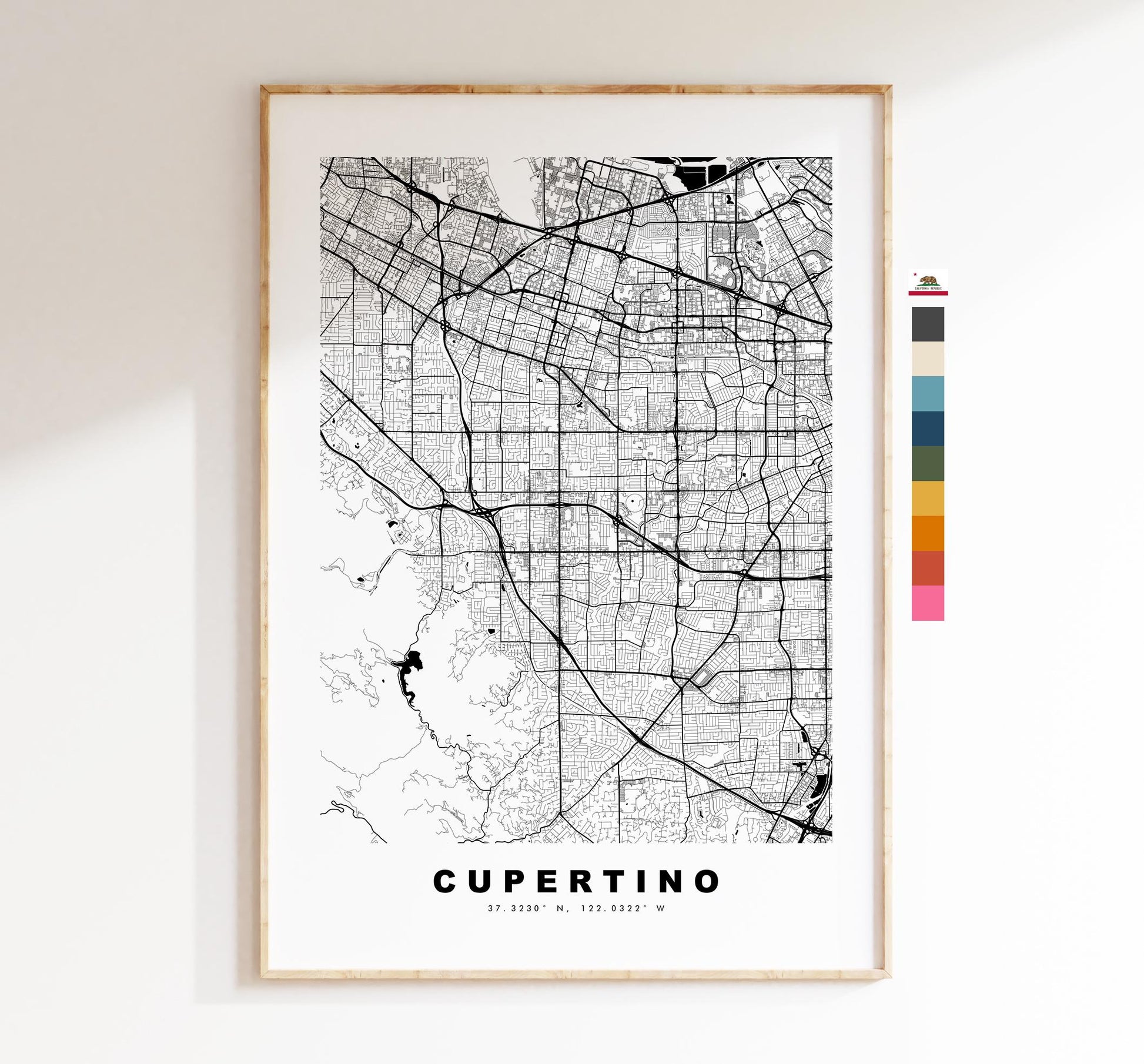 Cupertino Map Print - City Map Poster - Map Art - USA City Maps - Cupertino Print - Cupertino Poster - Minimalist City Map - California