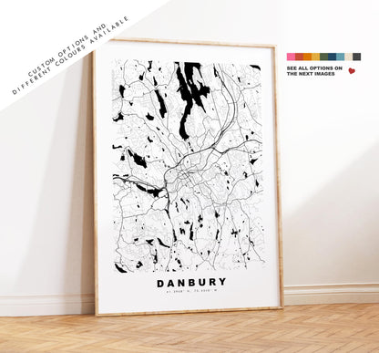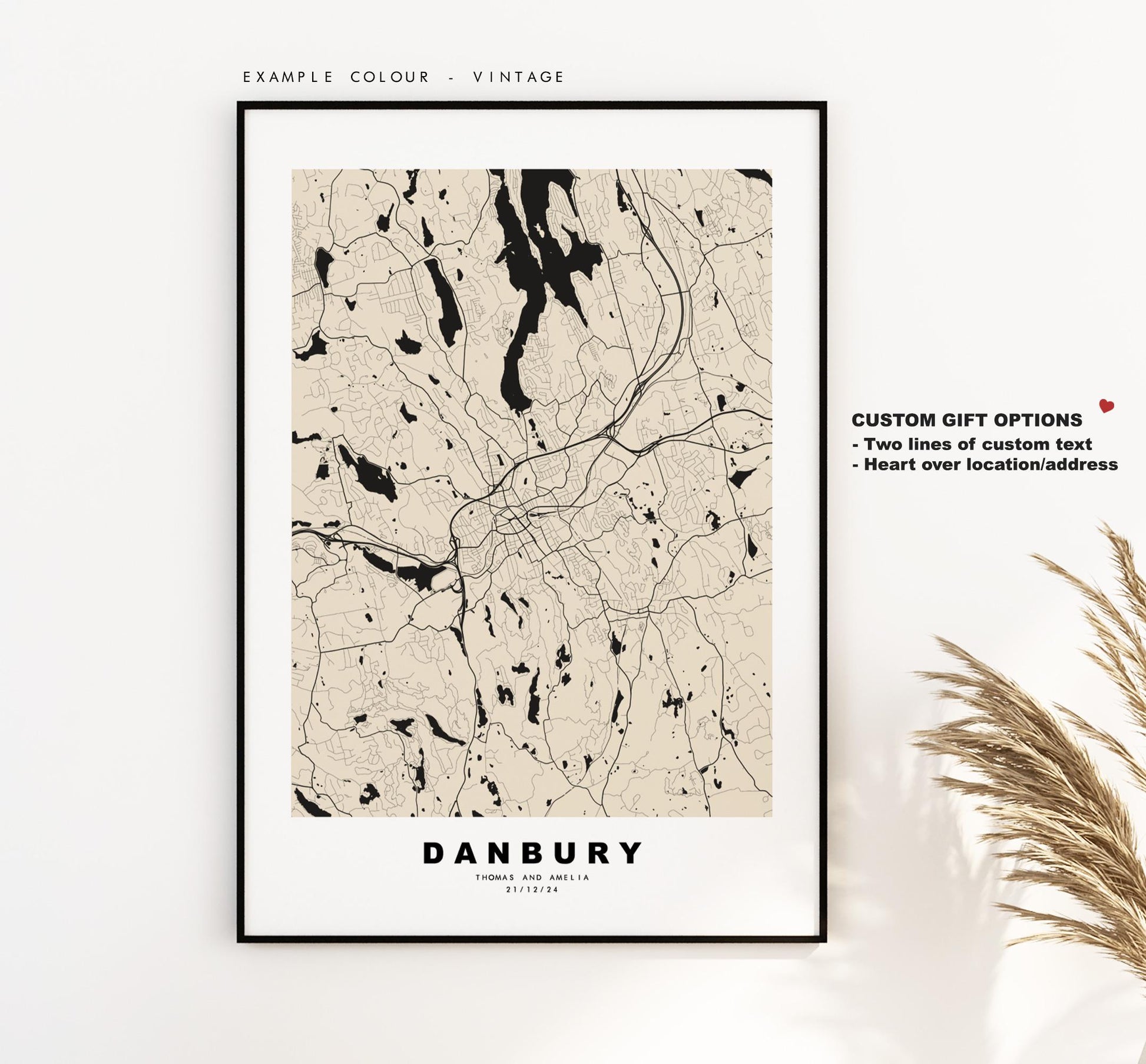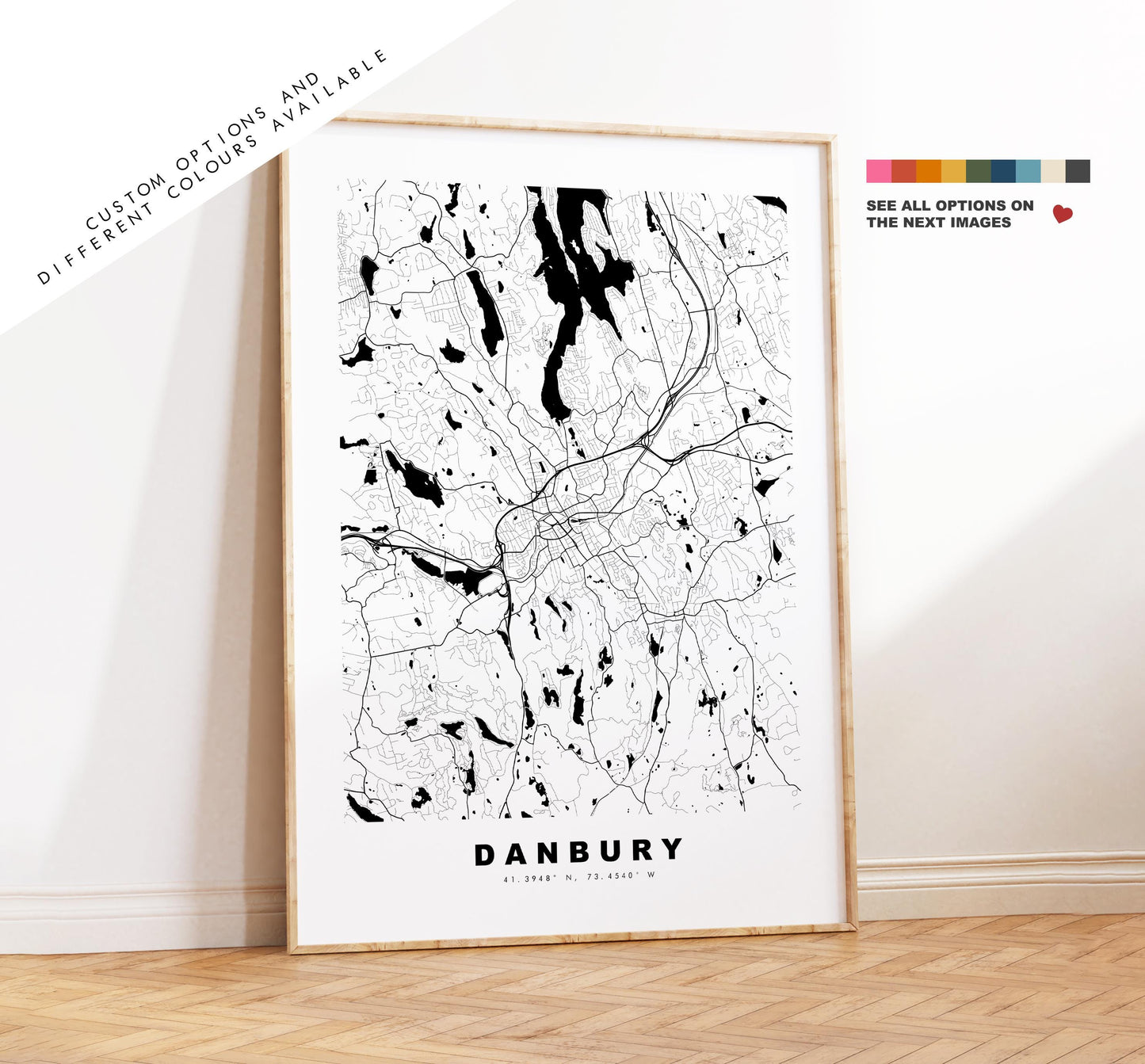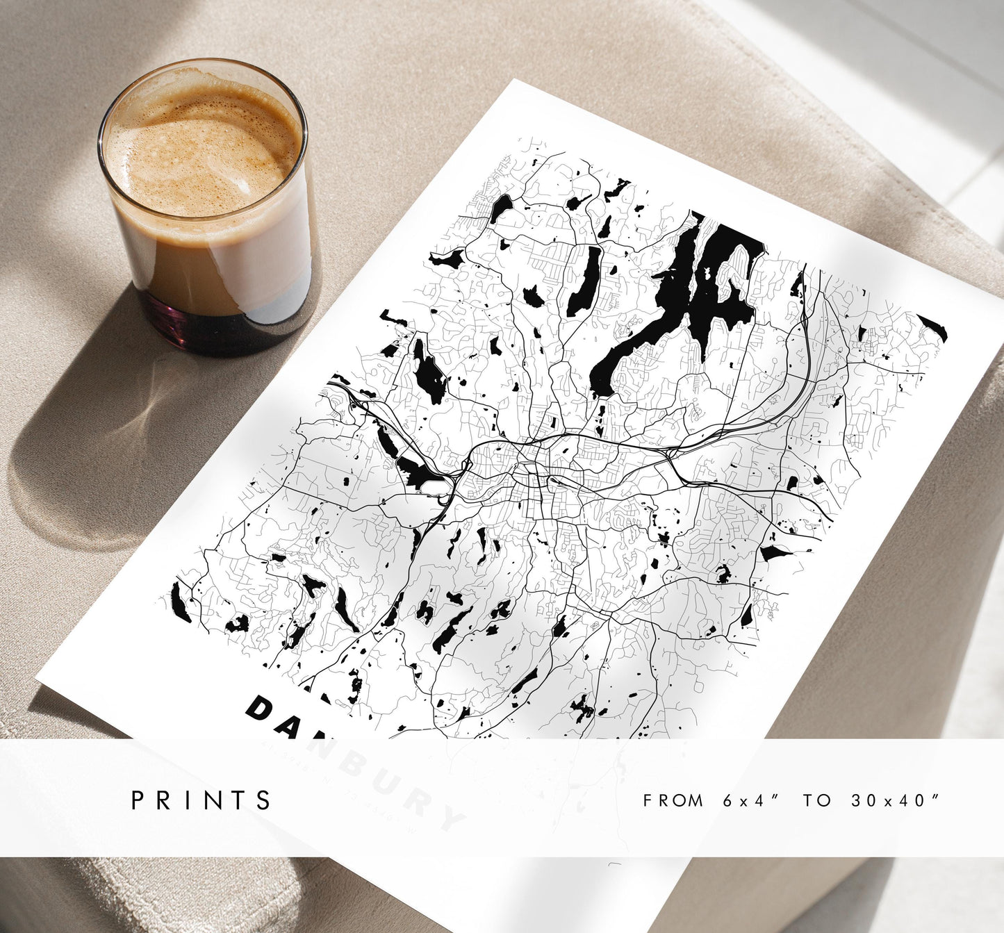 Danbury Map Print - City Map Poster - Map Art - USA City Maps - Danbury Print - Danbury Poster - Minimalist City Map - Connecticut