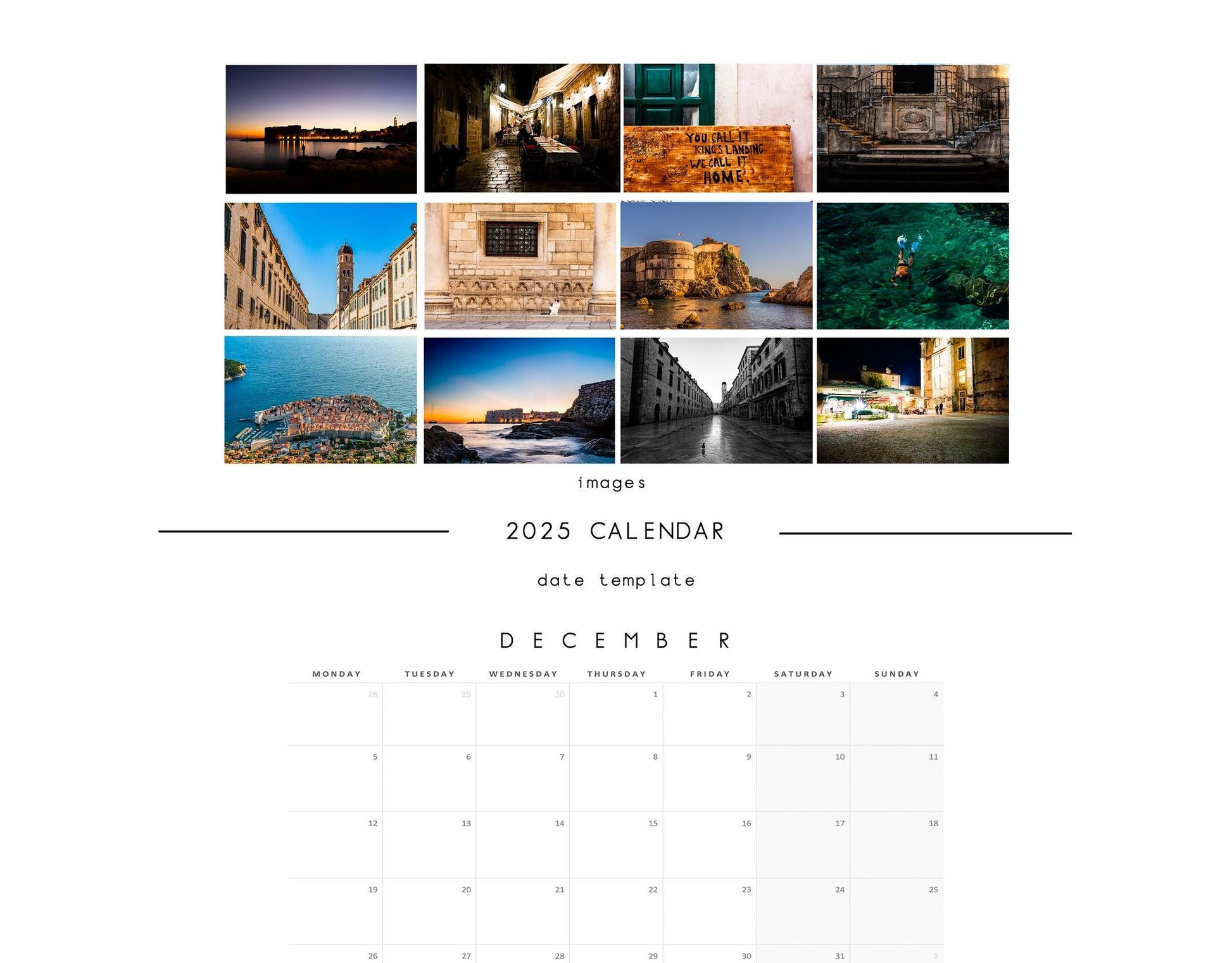 Dubrovnik 2025 Calendar - A3 or A4 Wall Calendar - 2025 Calendar - Gift - New Year - Dubrovnik Calendar - Planner - Croatia