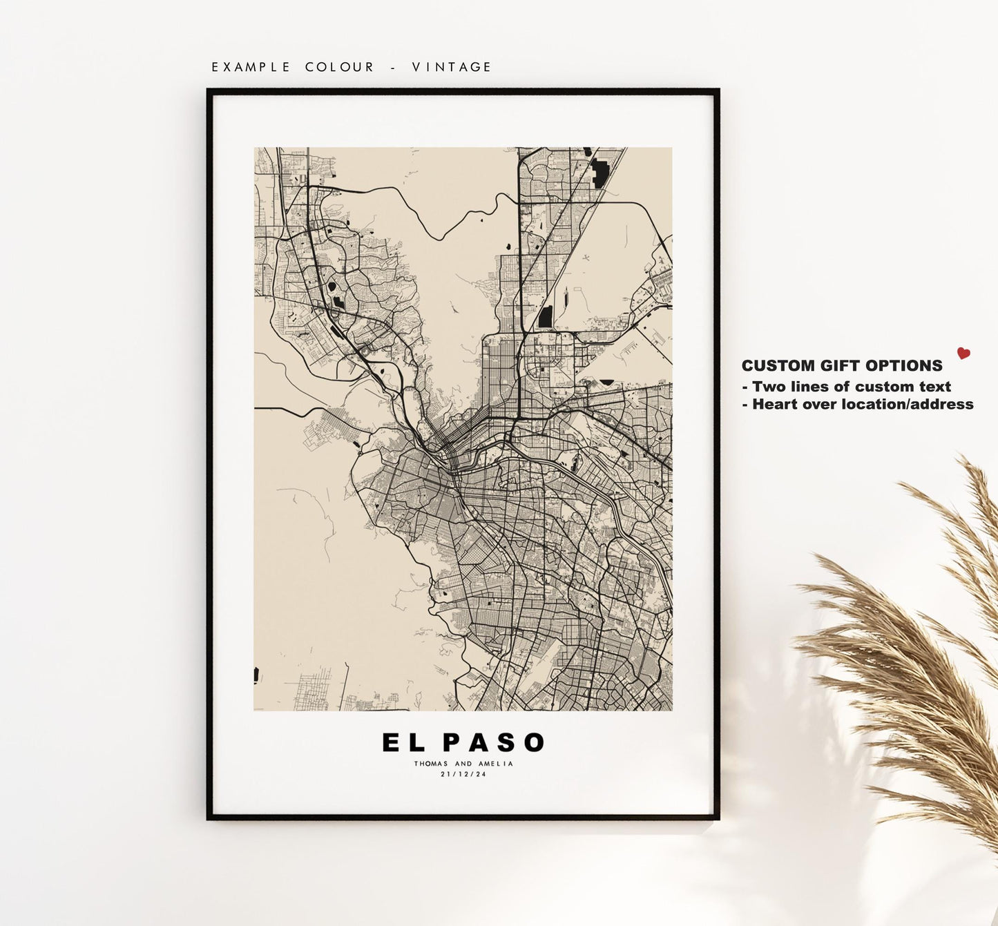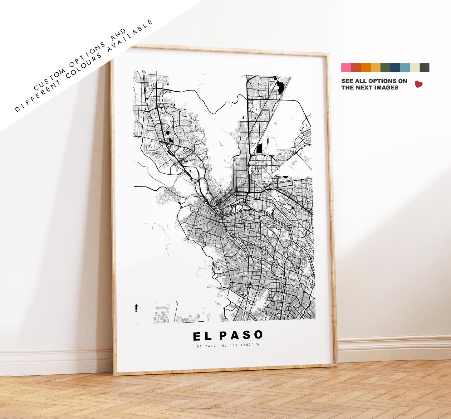 El Paso Map Print - City Map Poster - Map Art - USA City Maps - El Paso Print - El Paso Poster - Minimalist City Map - Texas