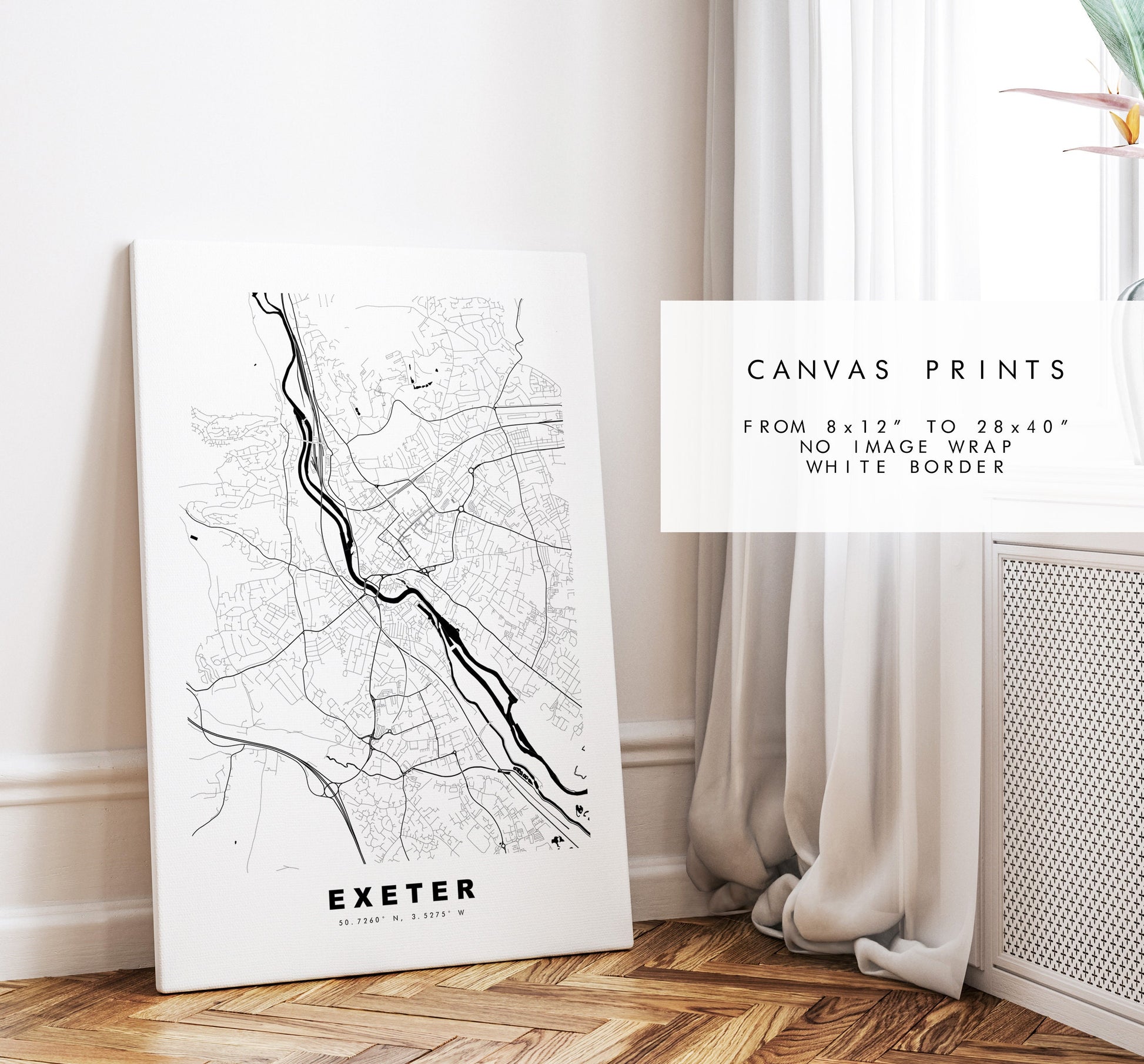 Exeter Map Print - Minimalist City Map Poster - Map Art - UK - Exeter Print - Exeter Poster - Different Colours Available