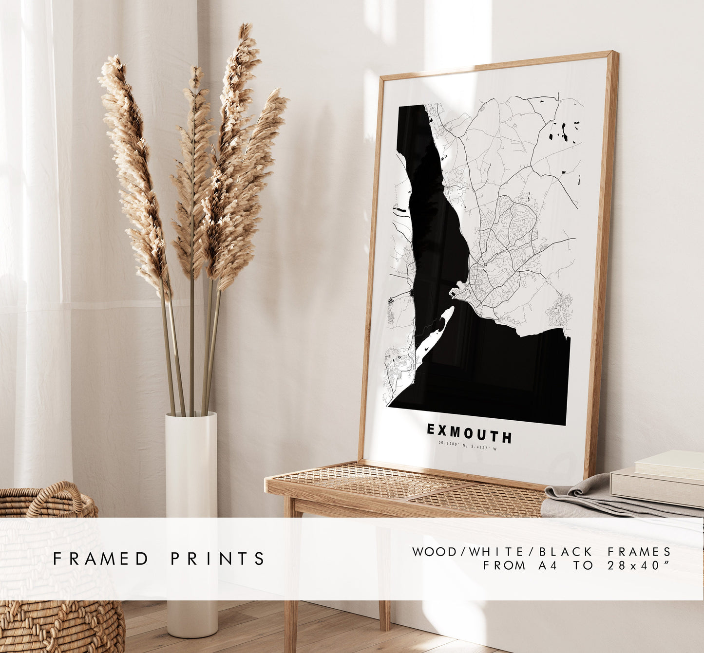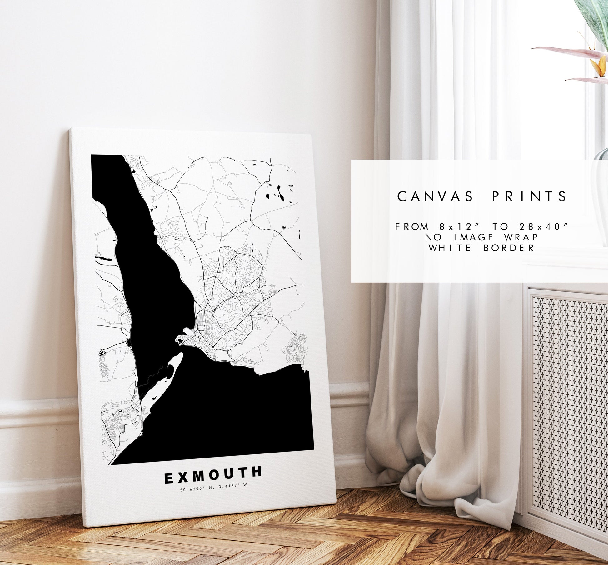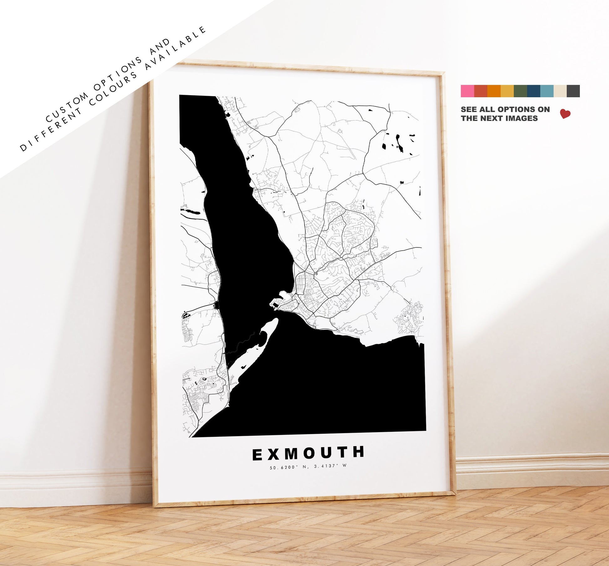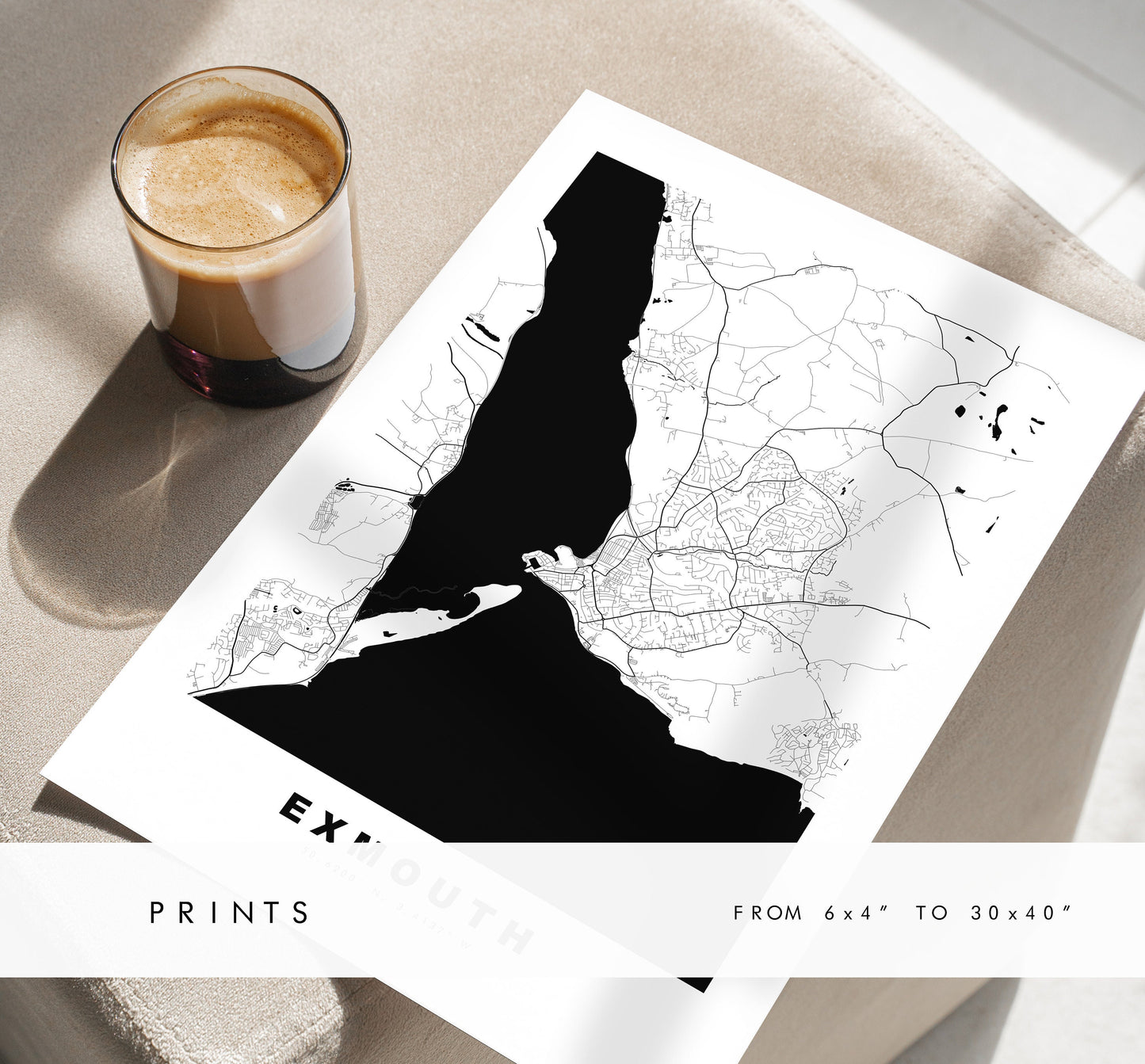 Exmouth Map Print - Minimalist City Map Poster - Map Wall Art - UK - Exmouth Print - Exmouth Poster - Different Colours Available