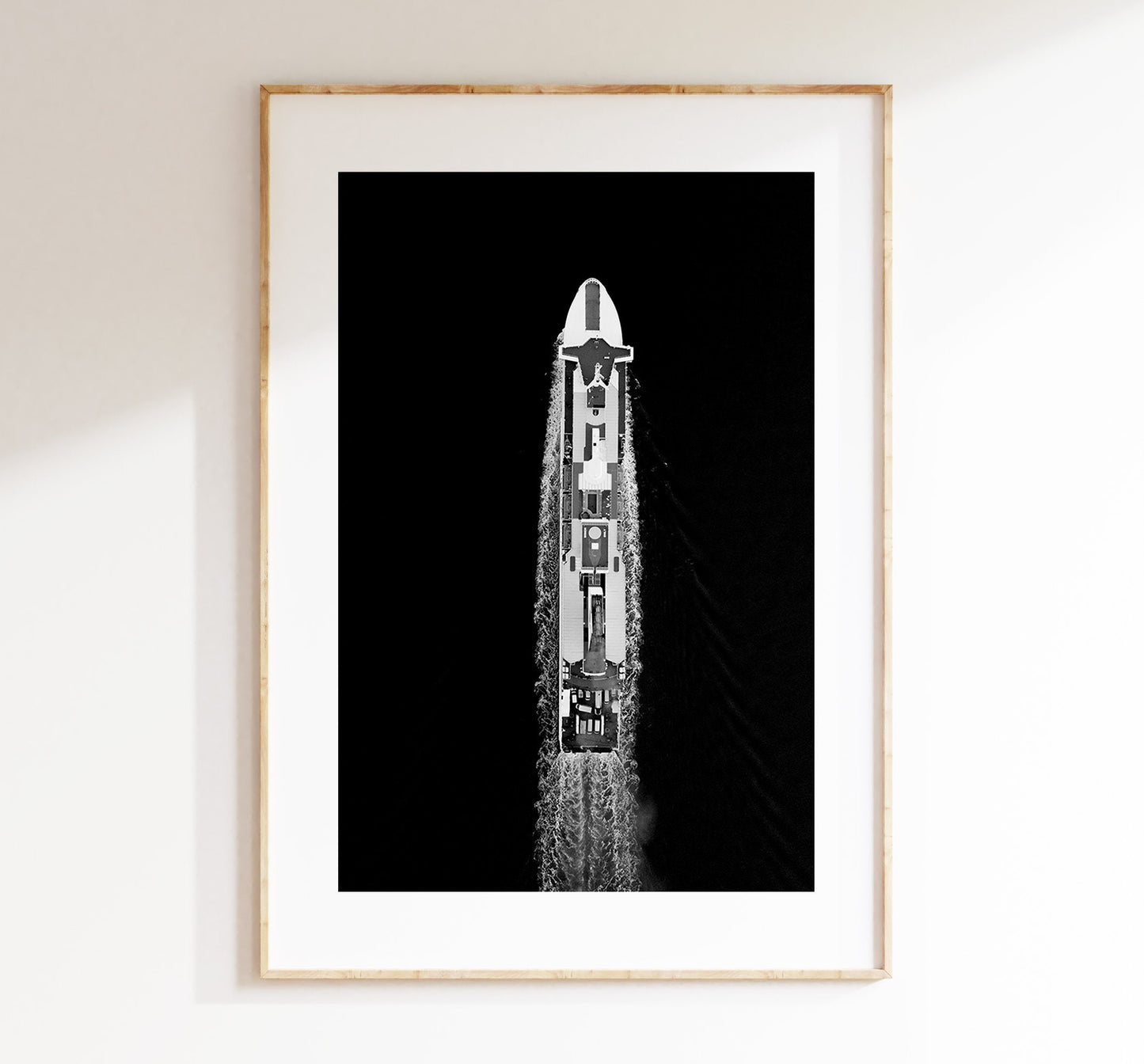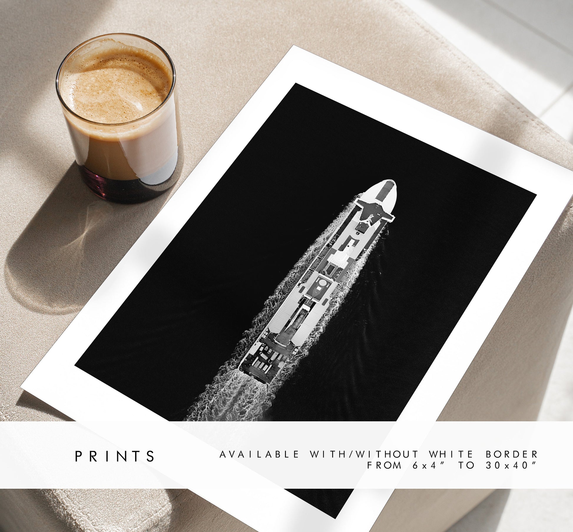 Ferry to France - Photography Print - Portsmouth and Southsea Prints - Wall Art - Frame and Canvas Options - Portrait - BW - Aerial
