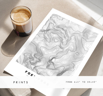 Foel-Fras Print - Contour Map - Snowdonia - Wales - Topographic Map - Print - Poster - Wall Art - Foel-Fras Poster - Carneddau Range