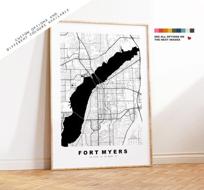 Fort Myers Map Print - City Map Poster - Map Art - USA City Maps - Fort Myers Print - Fort Myers Poster - Minimalist City Map - Florida