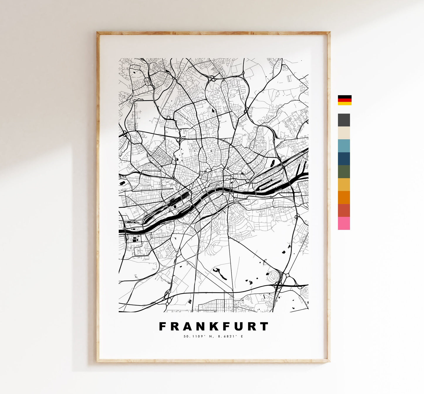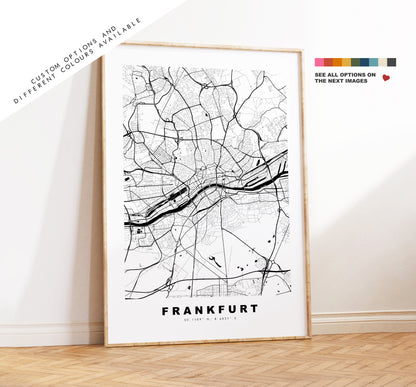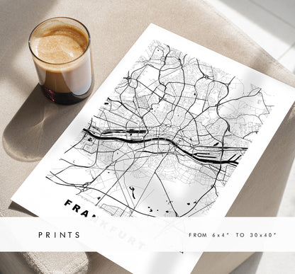 Frankfurt Map Print - City Map Poster - Map Art - Germany City Maps - Frankfurt Print - Frankfurt Poster - Minimalist City Map - Germany