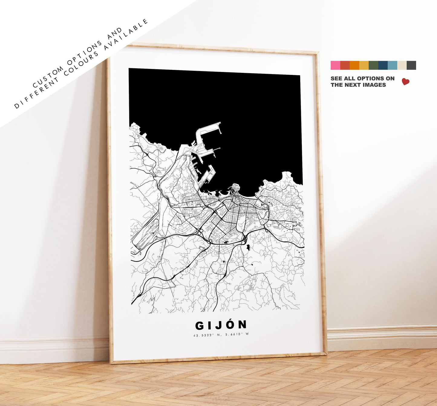Gijon Map Print - City Map Poster - Map Art - Map Wall Art - Spain City Maps - Gijon Print - Gijon Poster - Minimalist City Map