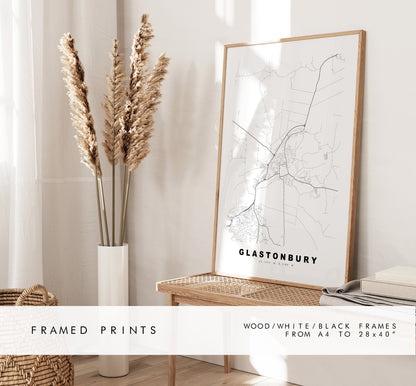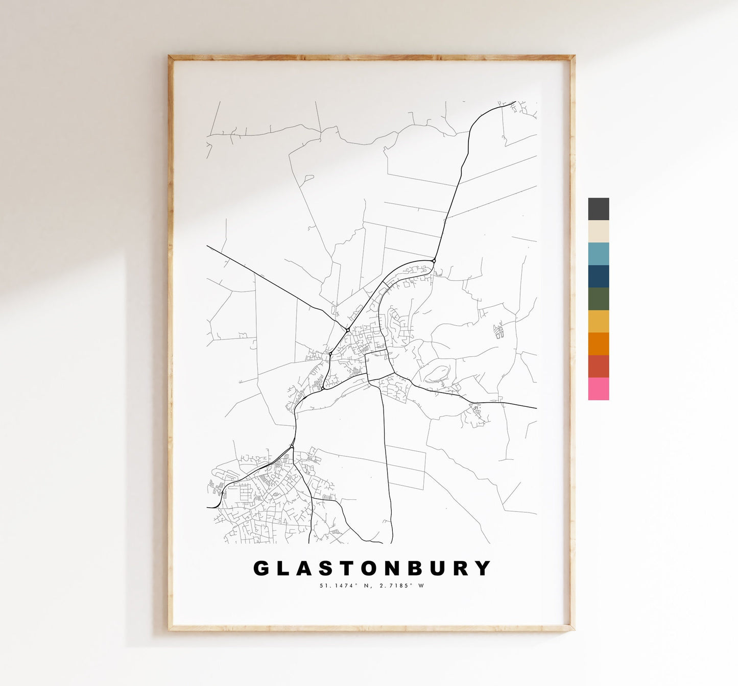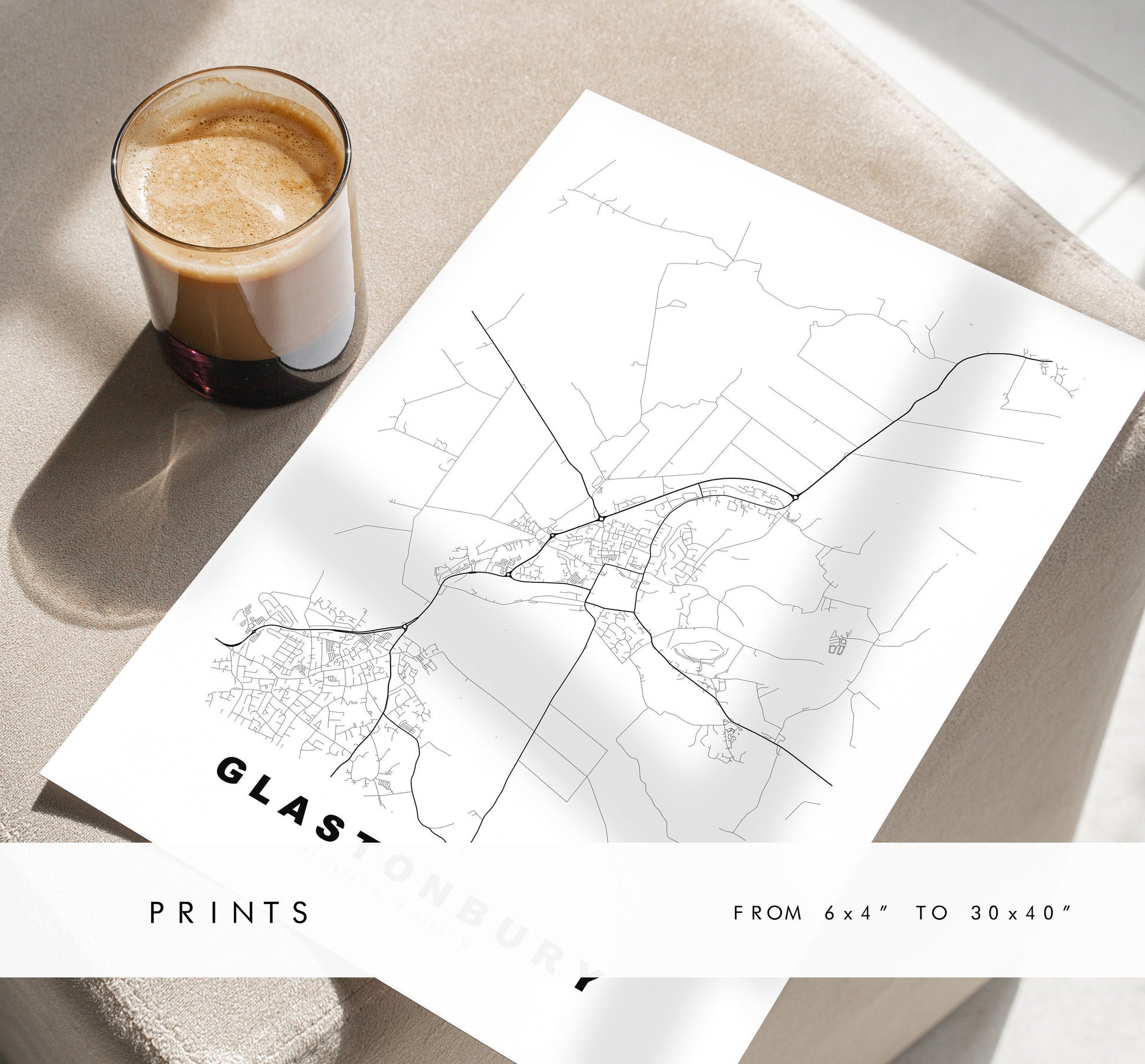 Glastonbury Map Print - Minimalist City Map Poster - Map Art - UK - Glastonbury Print - Glastonbury Poster - Different Colours Available