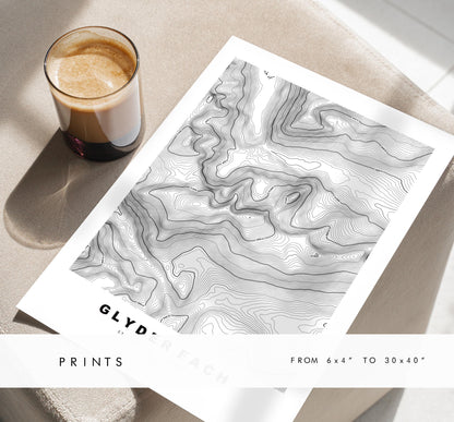 Glyder Fach Print - Contour Map - Snowdonia - Wales - Topographic Map - Print - Poster - Wall Art - Glyder Fach Poster - Glyderau