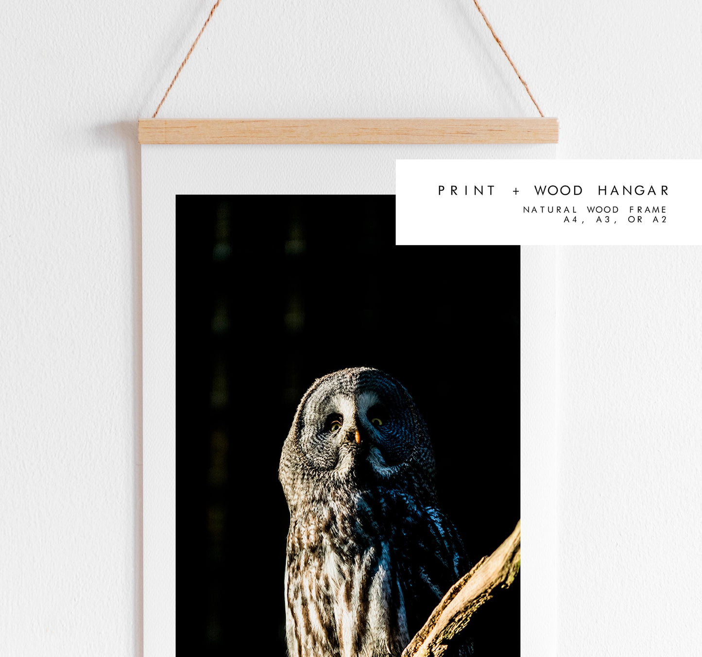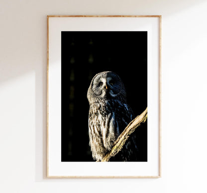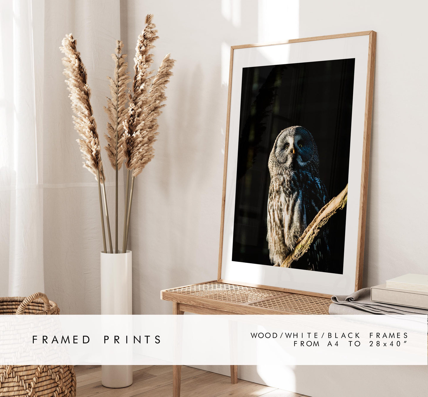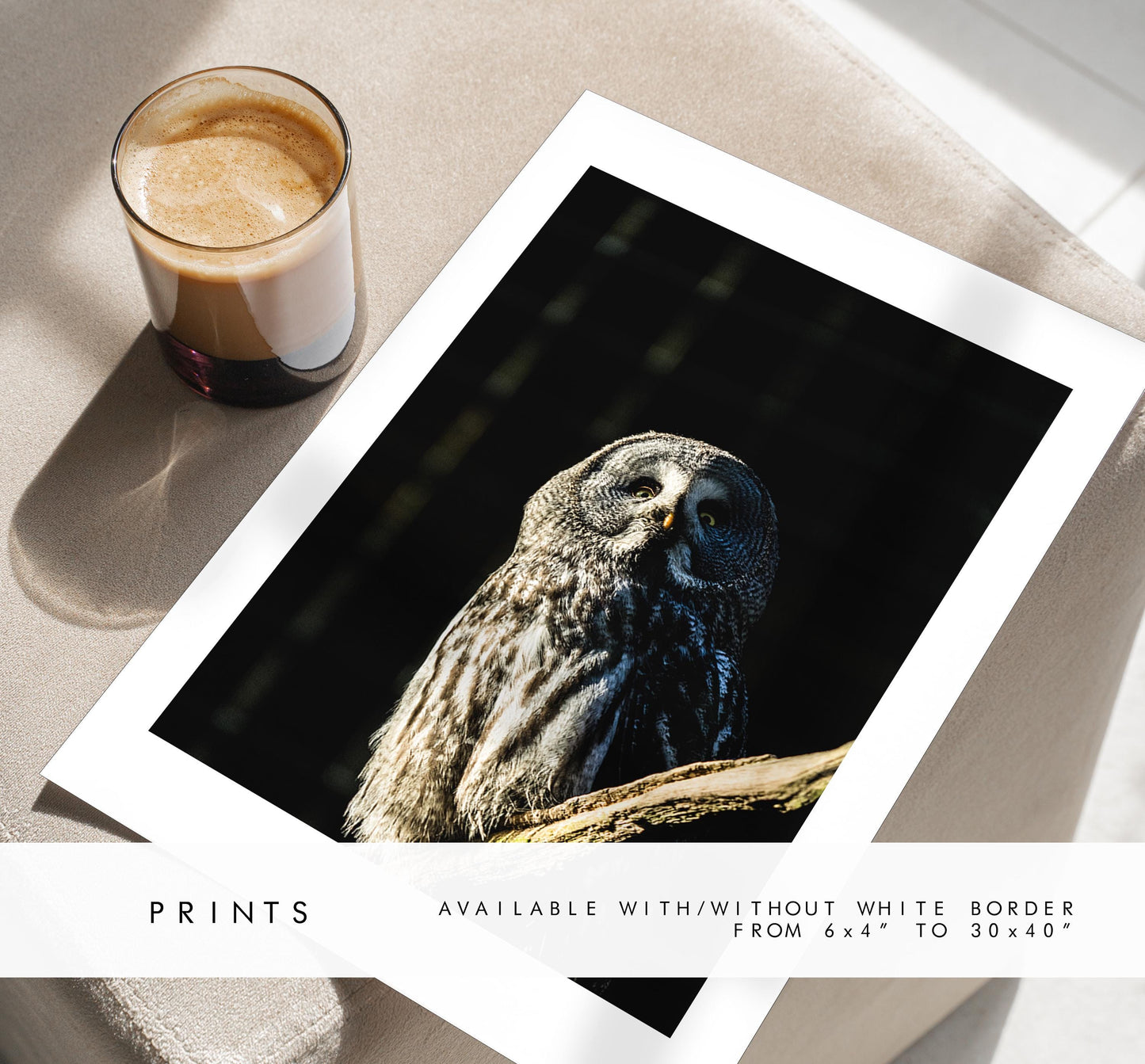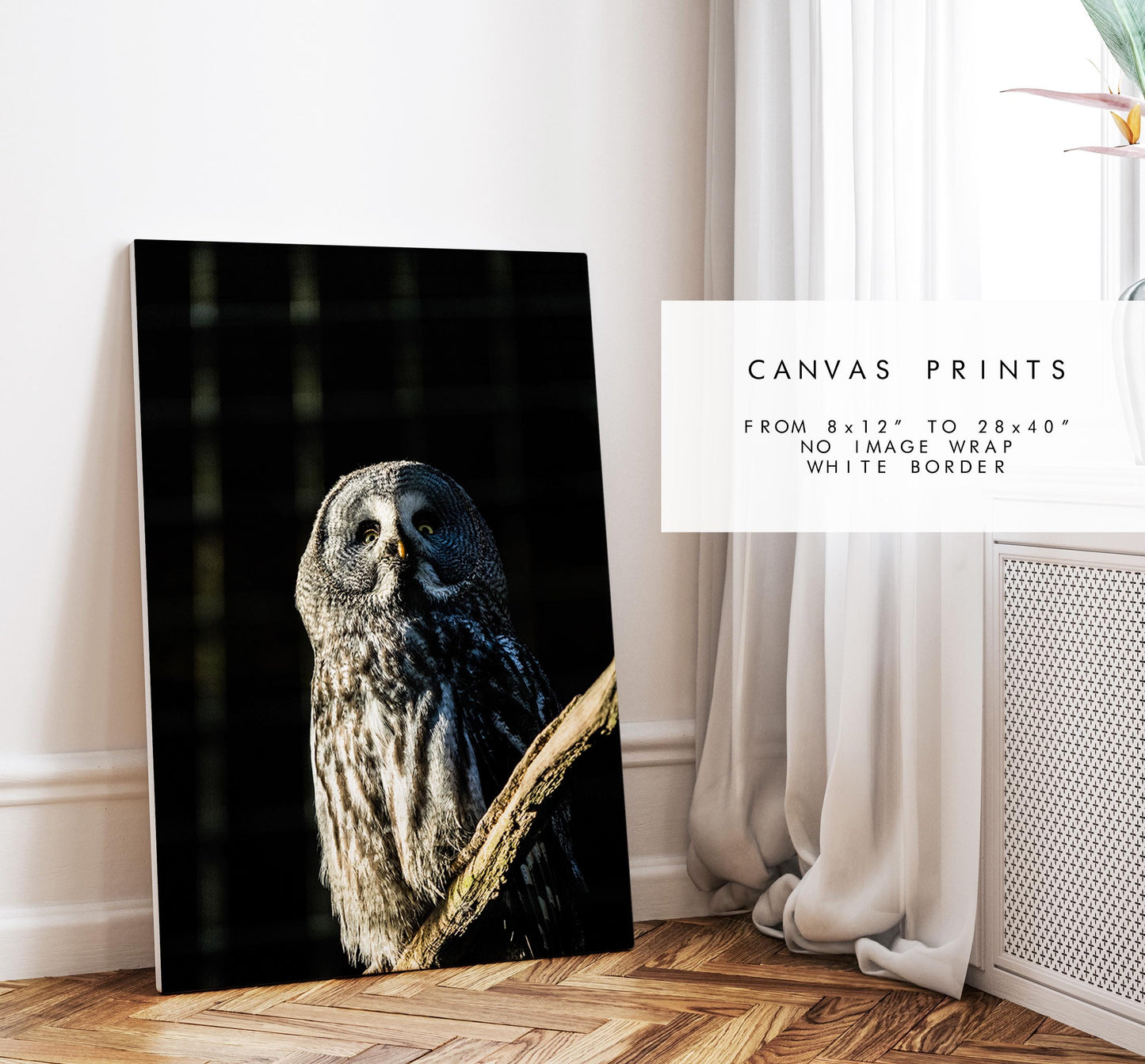 Great Grey Owl Photography Print - Hampshire Photography Prints - Wall Art - Frame and Canvas Options - Portrait - UK