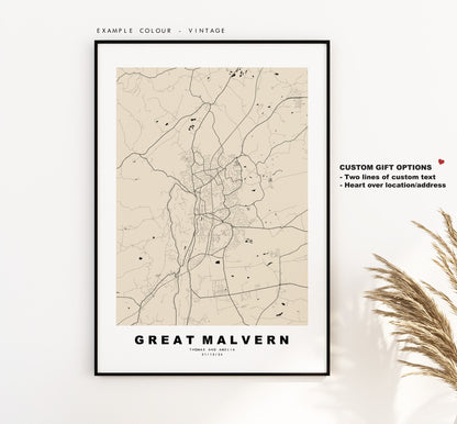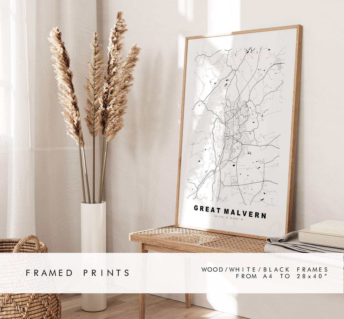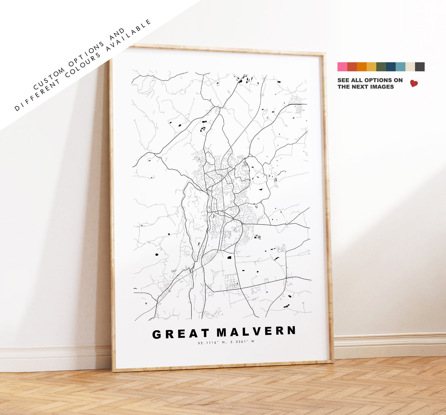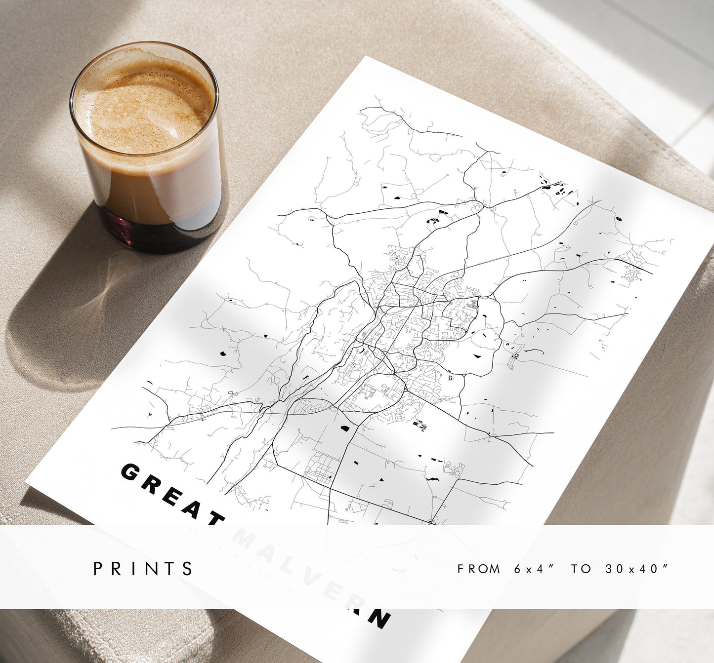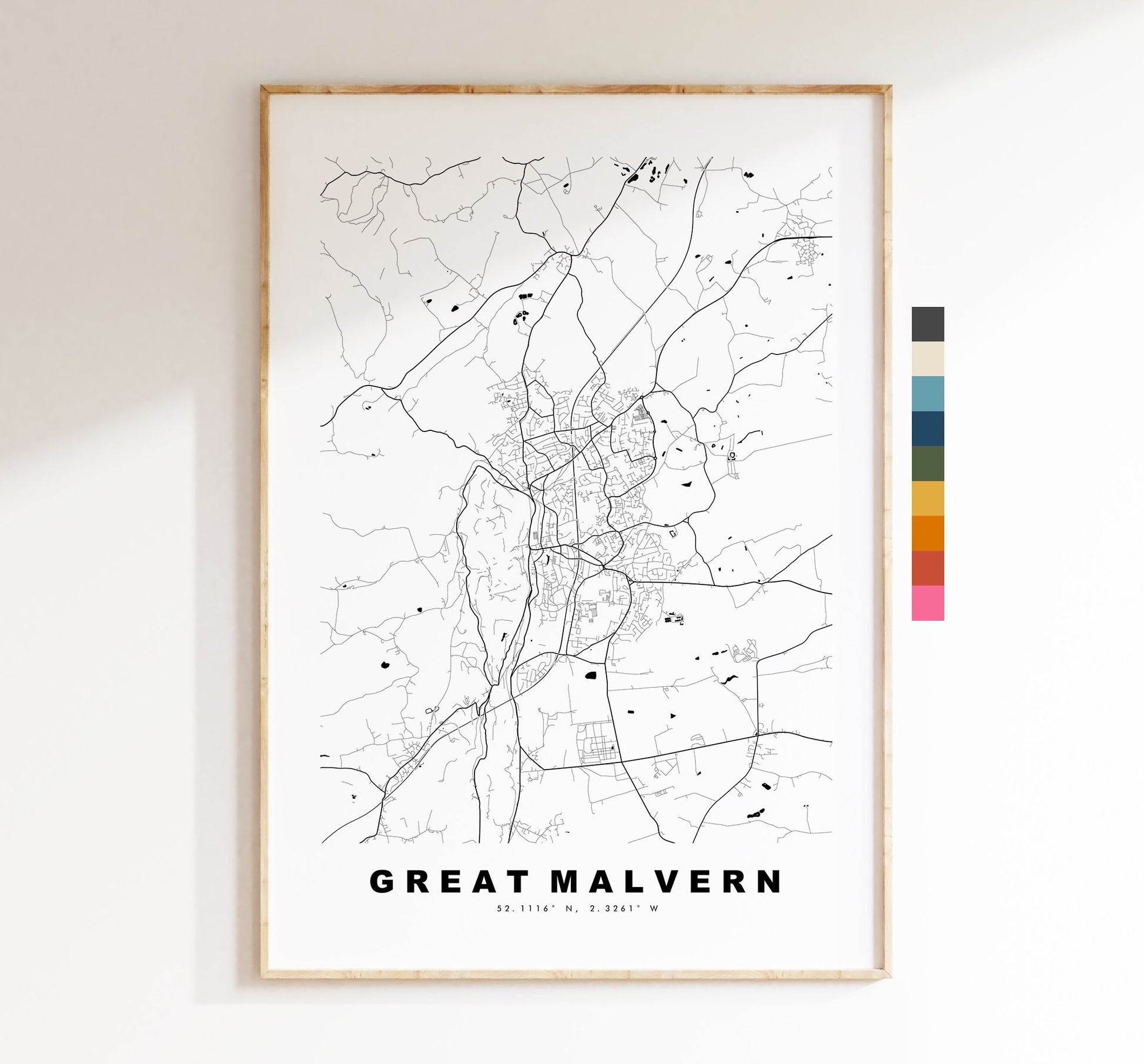 Great Malvern Map Print - Minimalist City Map Poster - Map Art - UK - Great Malvern Print - Malvern Poster - Different Colours Available