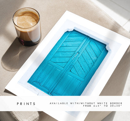 Greek Blue Door - Photography Print - Greece - Print - Poster - Santorini Photography - Greece Wall Art - Blue Wall Art - Blue Architecture