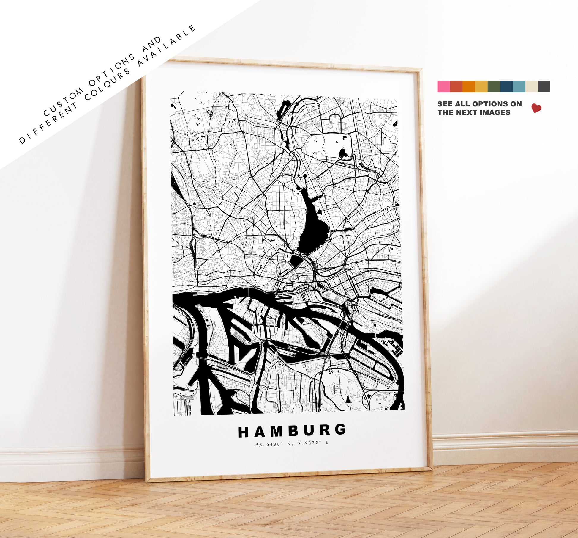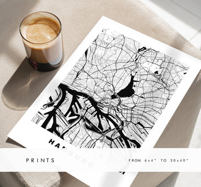 Hamburg Map Print - City Map Poster - Map Wall Art - Germany City Maps - Hamburg Print - Hamburg Poster - Minimalist City Map - Germany