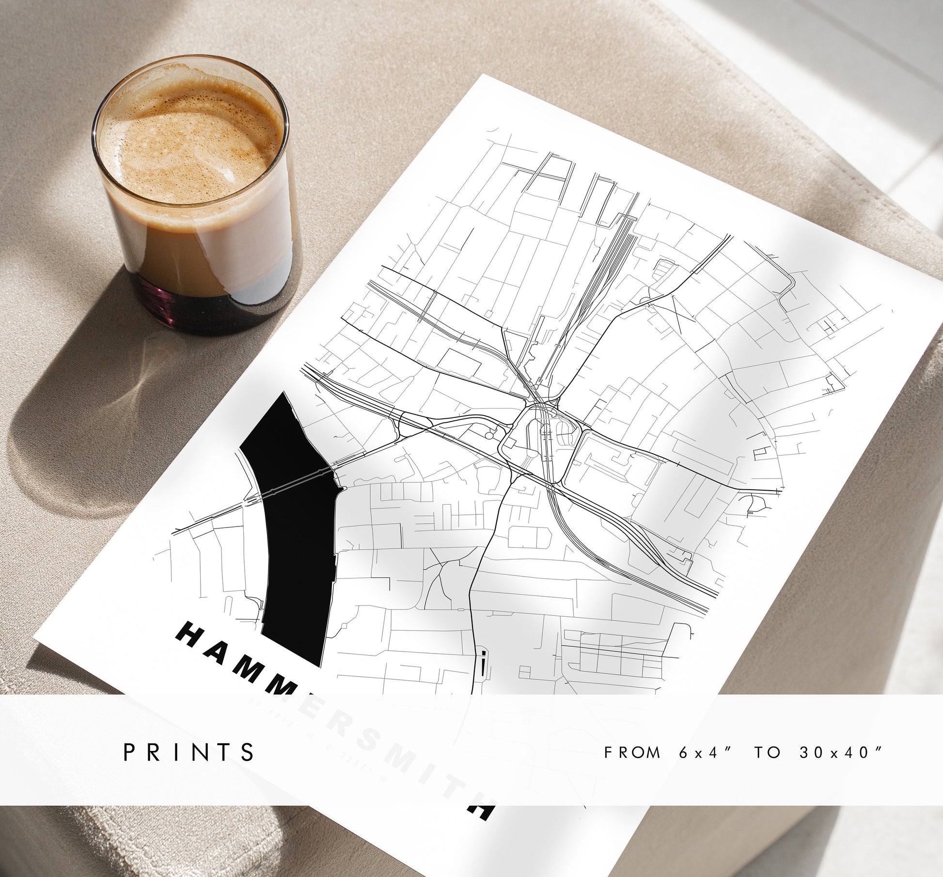 Hammersmith Map Print - Minimalist City Map Poster - Map Art - London, UK - Hammersmith Print - Poster - Different Colours Available