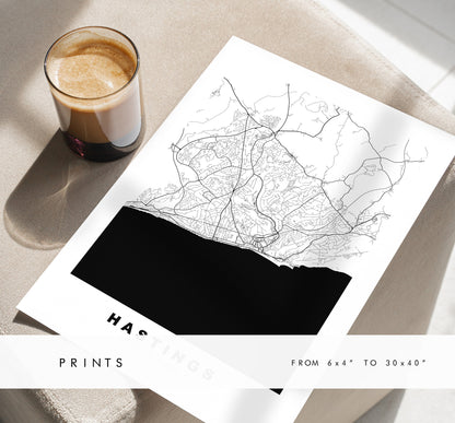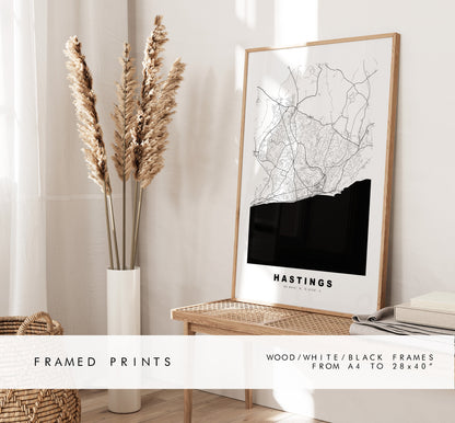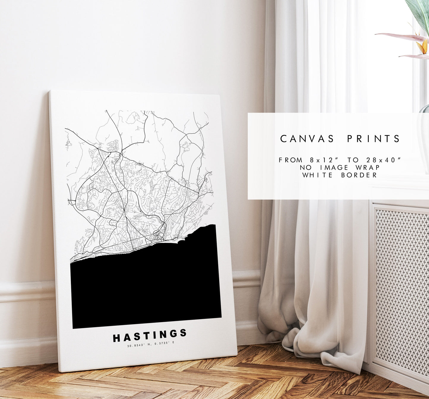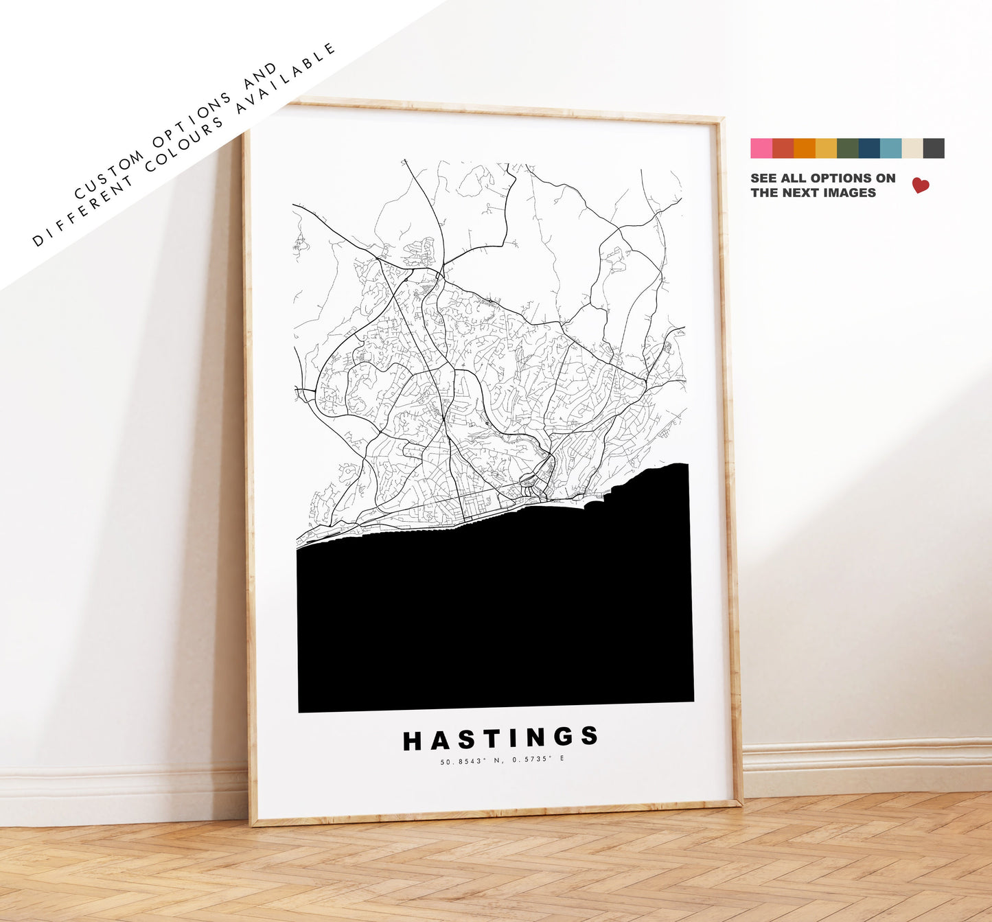 Hastings Map Print - Minimalist City Map Poster - Map Wall Art - UK - Hastings Print - Hastings Poster - Different Colours Available
