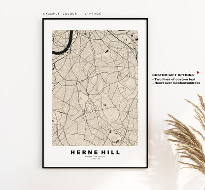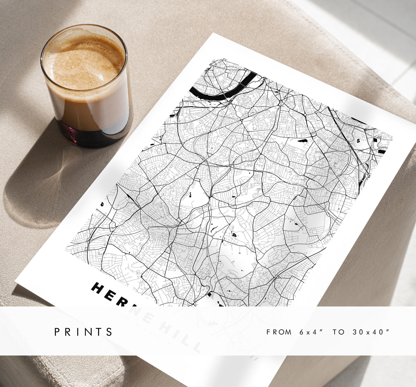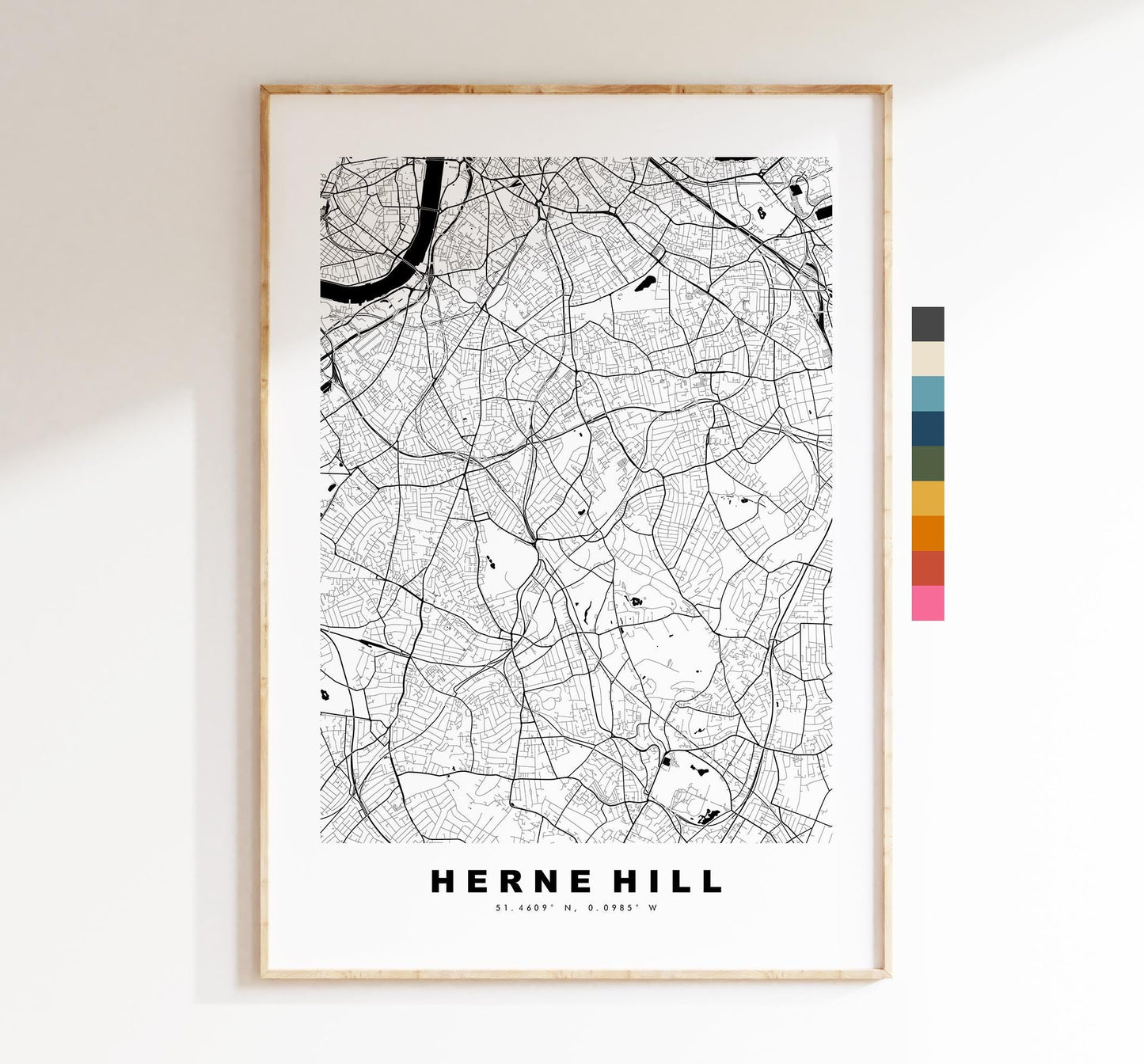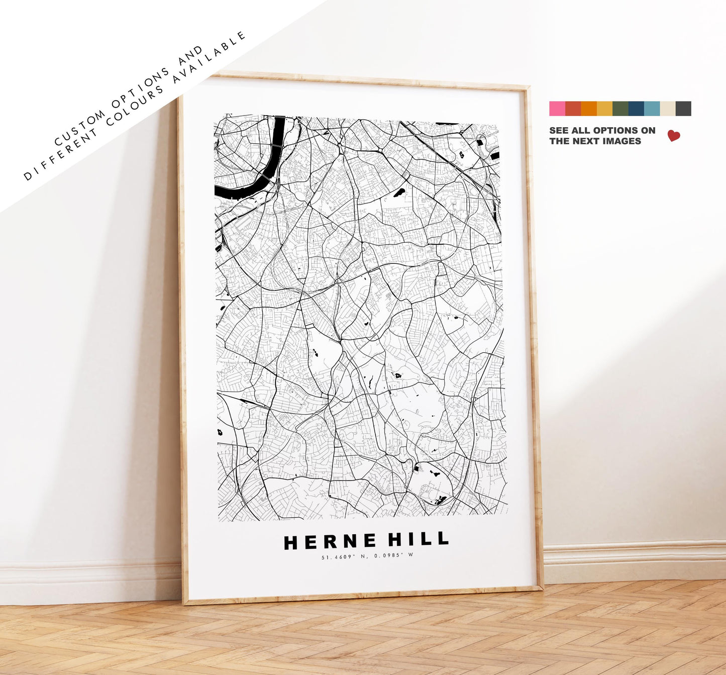 Herne Hill Map Print - Minimalist City Map Poster - Map Art - UK - Herne Hill Print - Herne Hill, London - Different Colours Available
