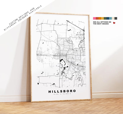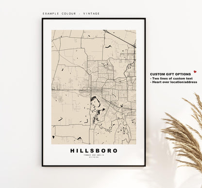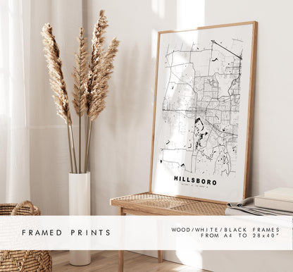 Hillsboro Map Print - City Map Poster - Map Art - USA City Maps - Hillsboro Print - Hillsboro Poster - Minimalist City Map - Oregon