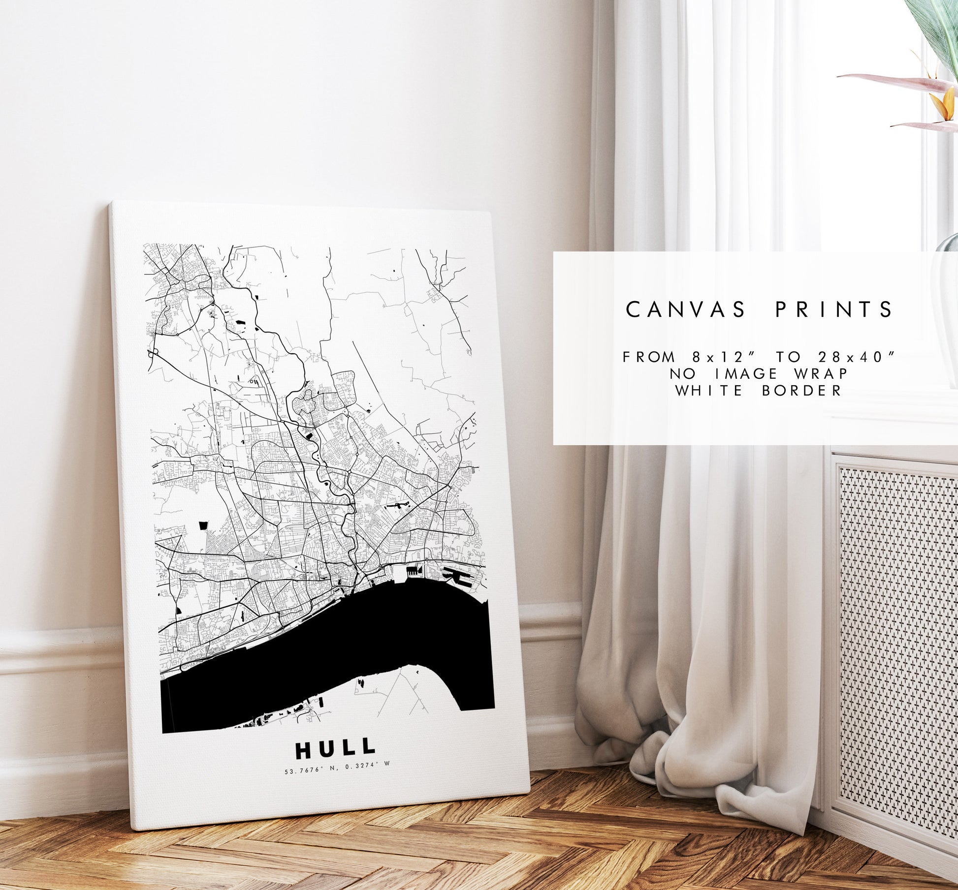 Hull Map Print - Minimalist City Map Poster - Map Wall Art - UK - Hull Print - Hull Poster - Different Colours Available