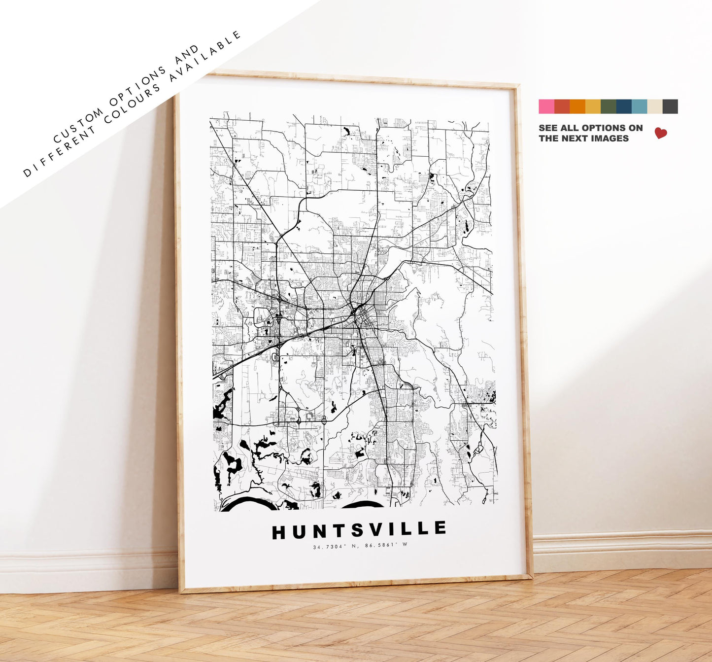 Huntsville Map Print - City Map Poster - Map Art - USA City Maps - Huntsville Print - Huntsville Poster - Minimalist City Map - Alabama
