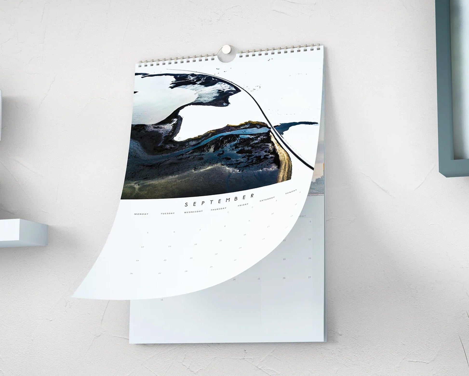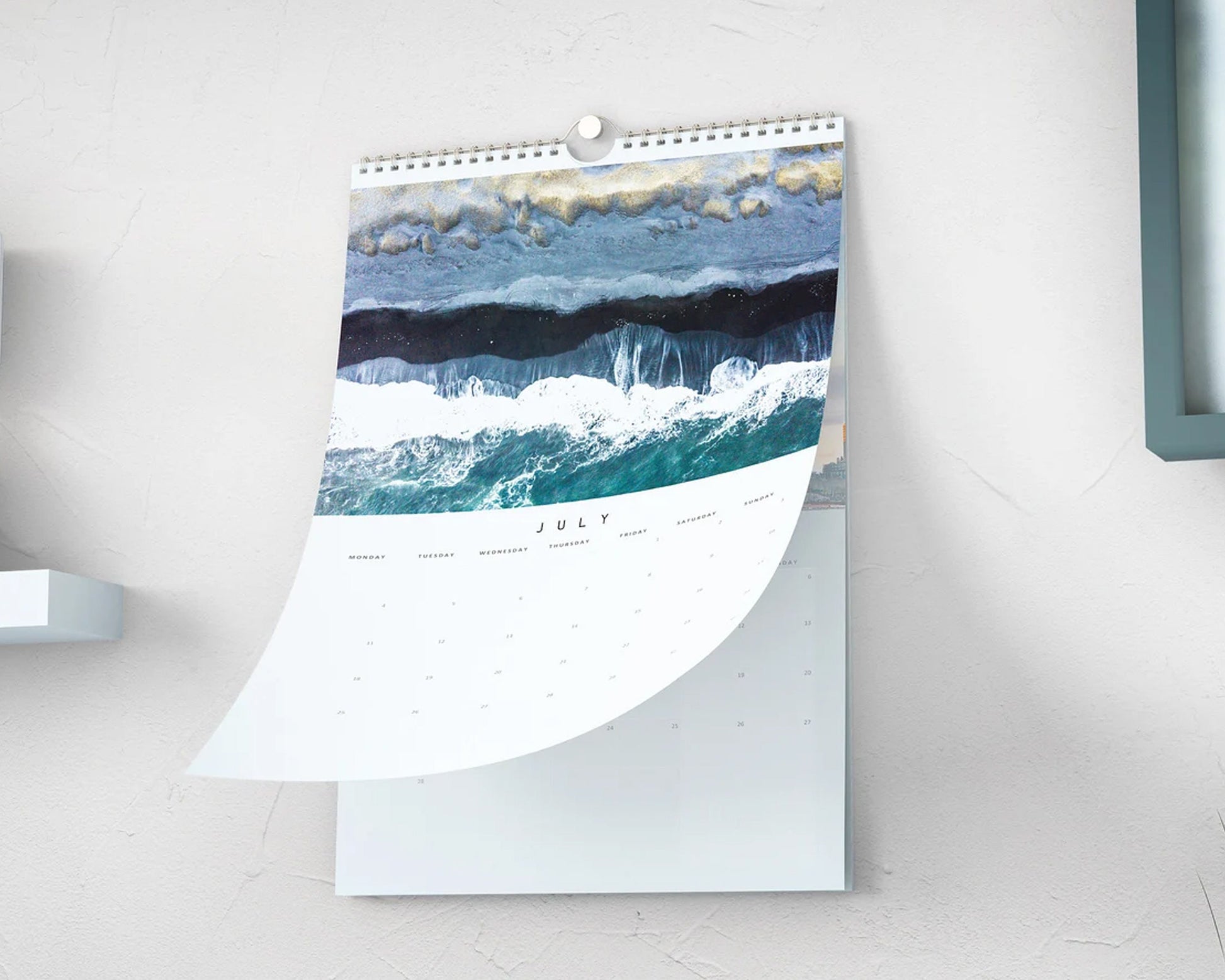 Each month features a wide image (see examples) above our modern, minimalist date template design, which has space for small notes under each date. All of our calendars are made to order and not mass produced.