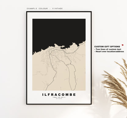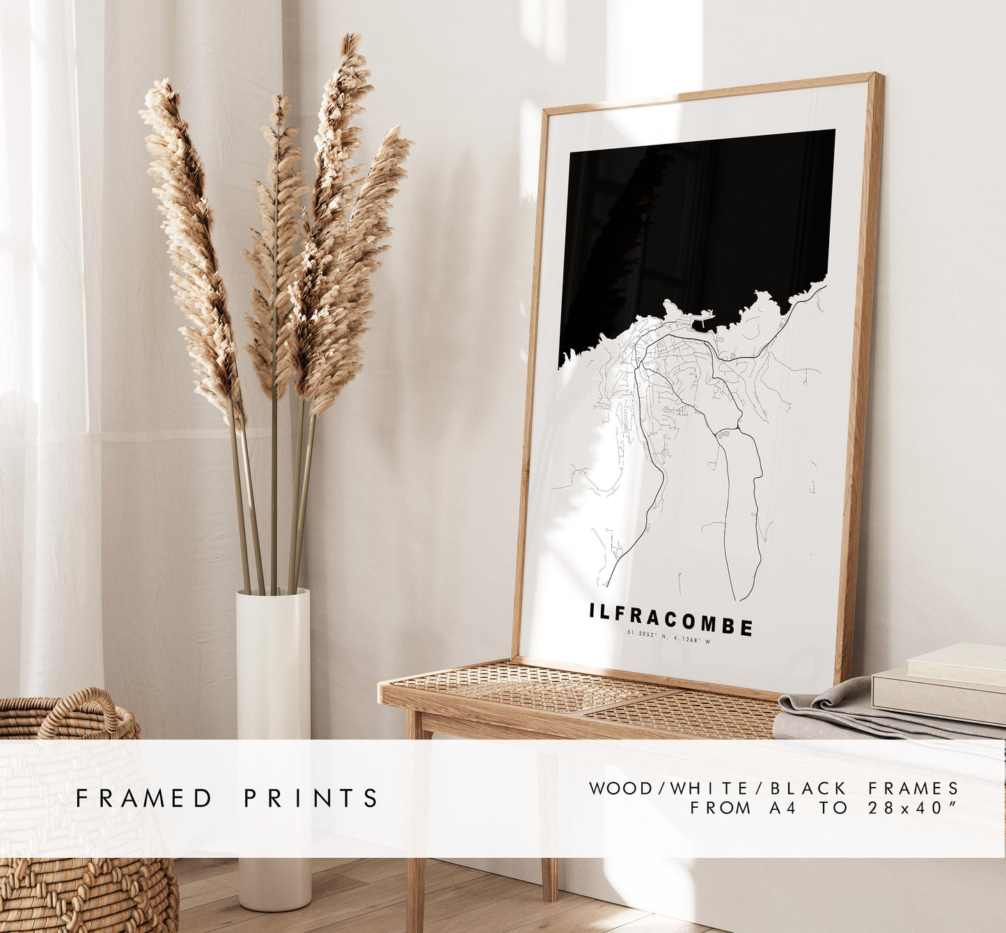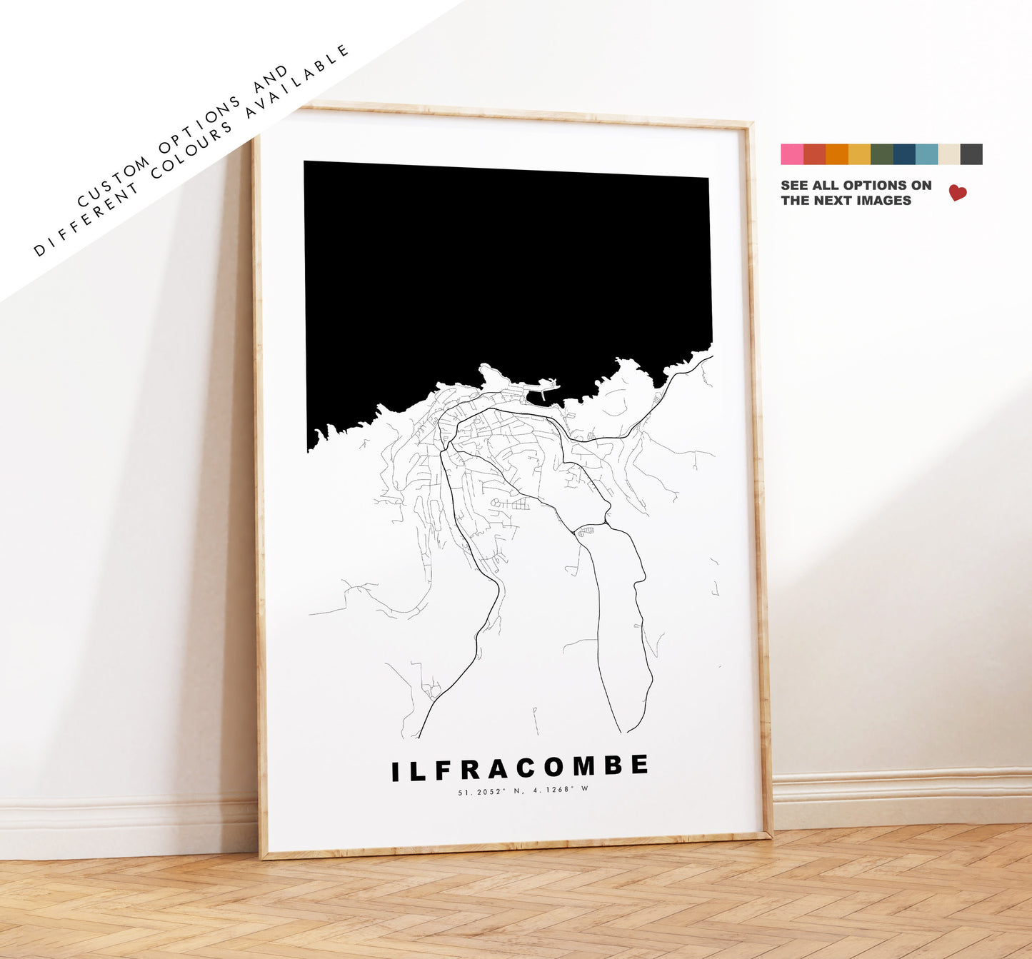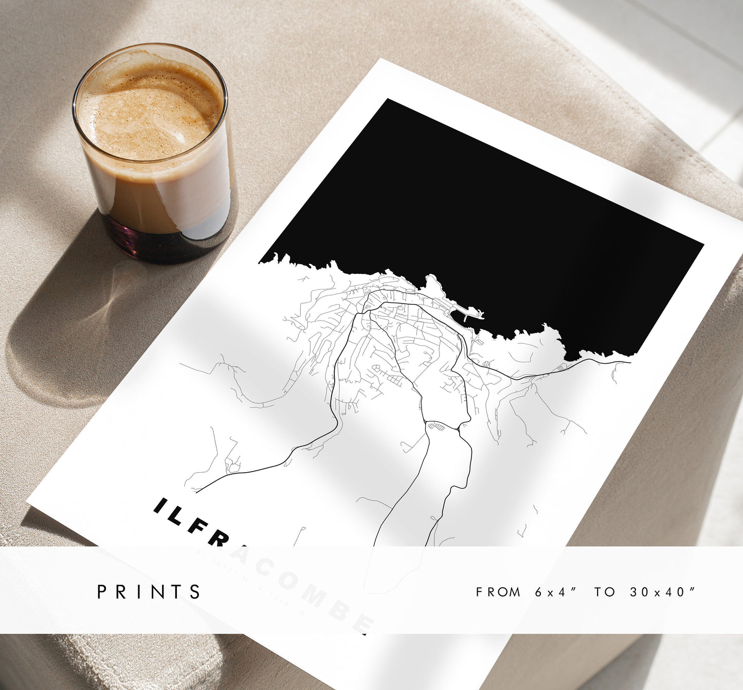 Ilfracombe Map Print - Minimalist City Map Poster - Map Wall Art - UK - Ilfracombe Print - Ilfracombe Poster - Different Colours Available
