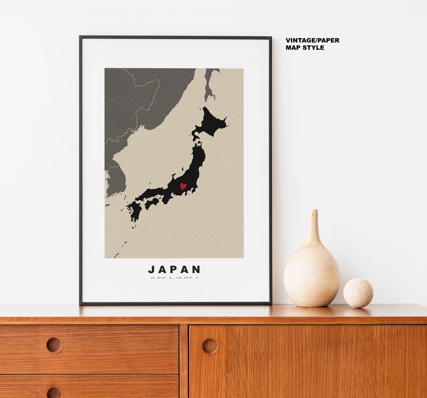 Japan Map Print - Personalised Map Gift - Framed or Canvas Options Available - Custom Text Options - Personalised Gift - Asia