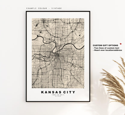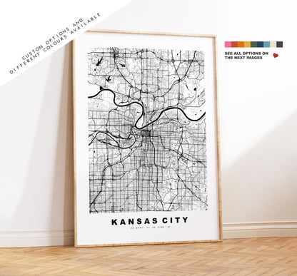 Kansas City Map Print - City Map Poster - Map Art - USA City Maps - Kansas City Print - Kansas City Poster - Minimalist City Map - Kansas