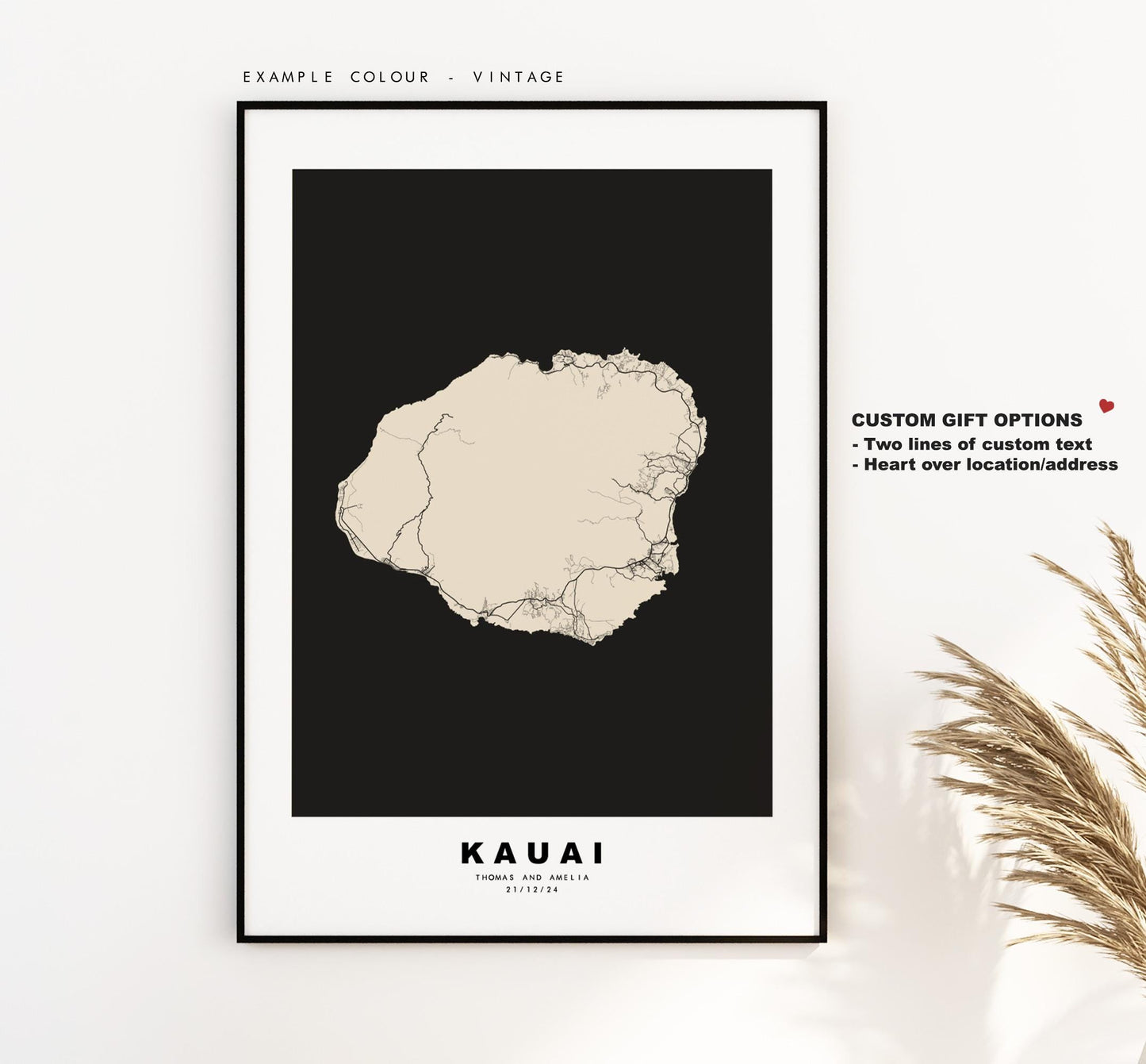You can personalise this print by adding up to two lines of custom text beneath the city title, or by adding a heart over a location or address.
