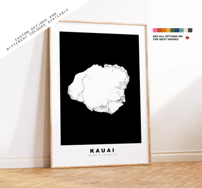 Kauai Island Map Print - Map Poster - Map Art - USA City Maps - Kauai Print - Kauai Poster - Minimalist Island Map - Hawaii