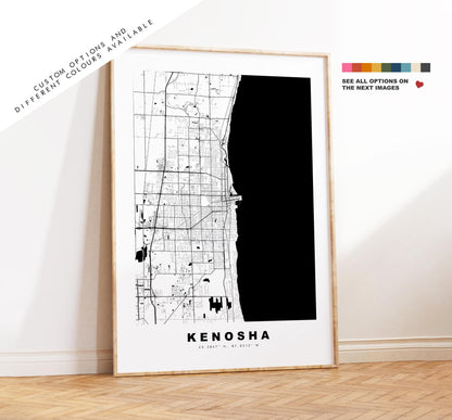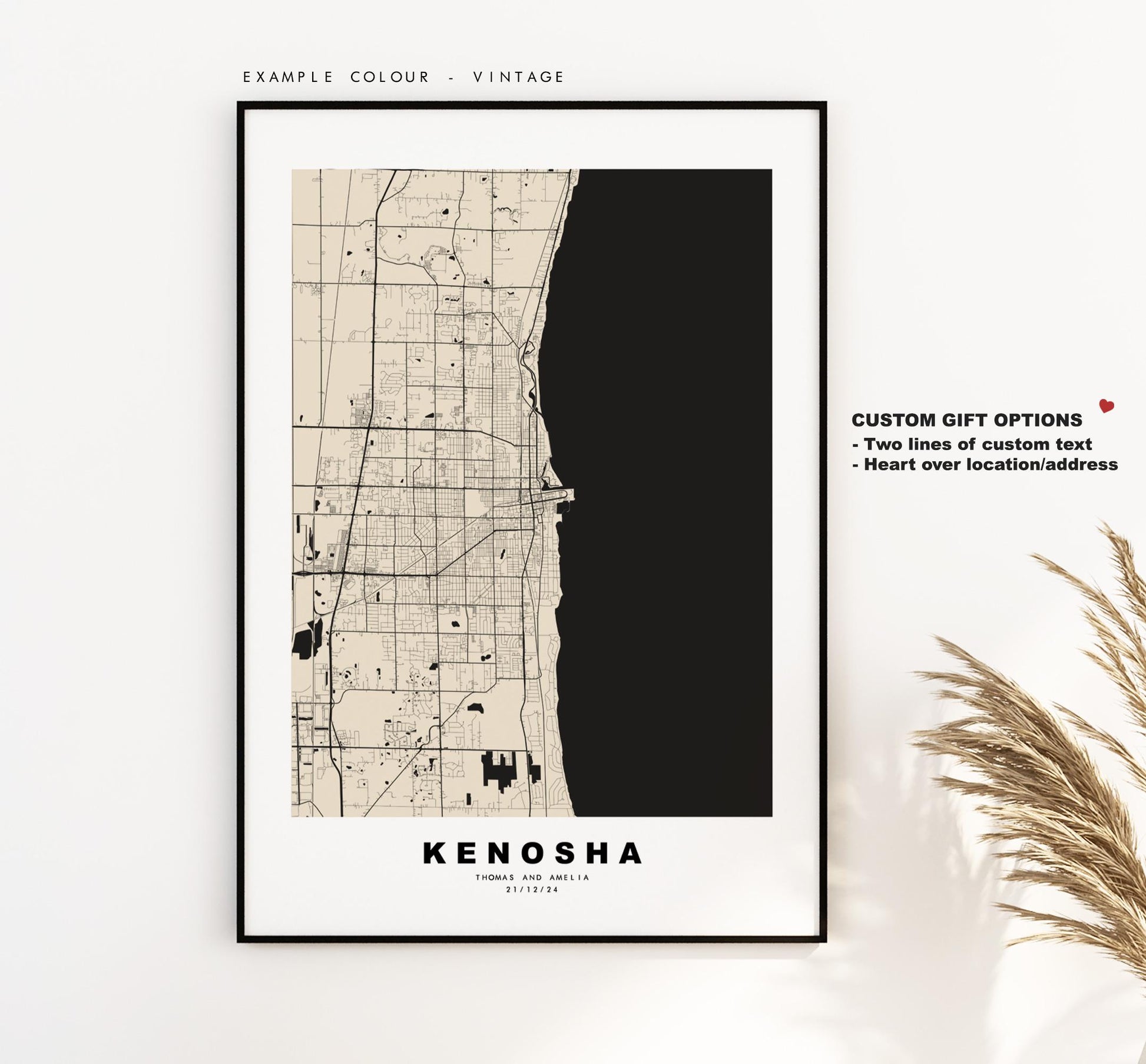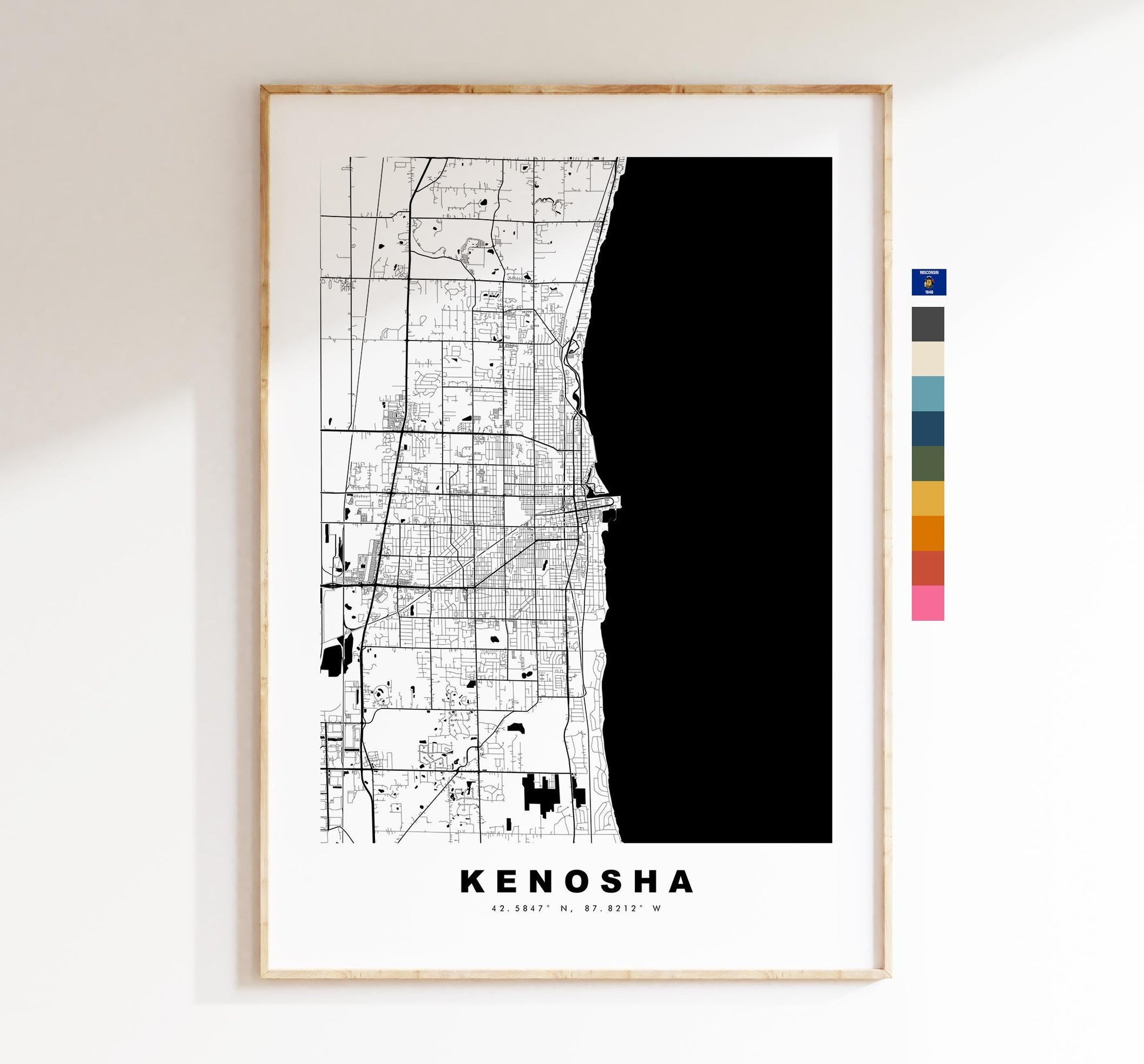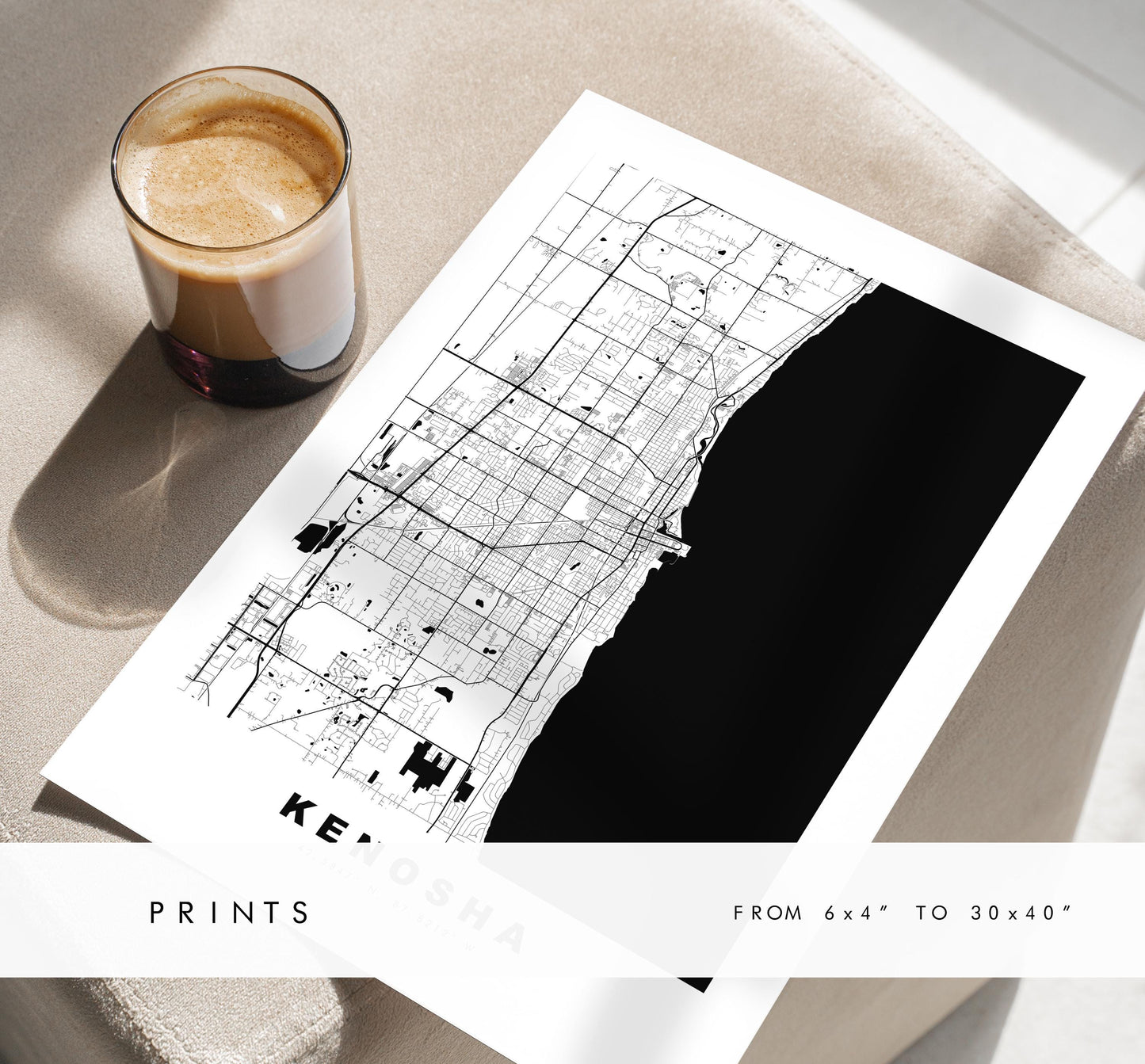 Kenosha Map Print - City Map Poster - Map Art - USA City Maps - Kenosha Print - Kenosha Poster - Minimalist City Map - Wisconsin