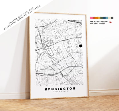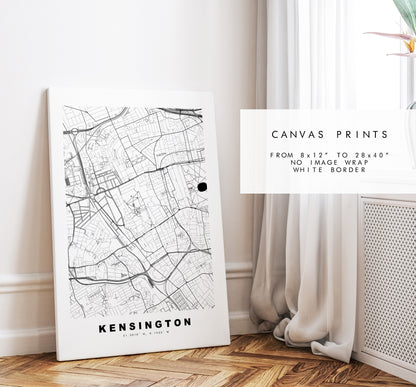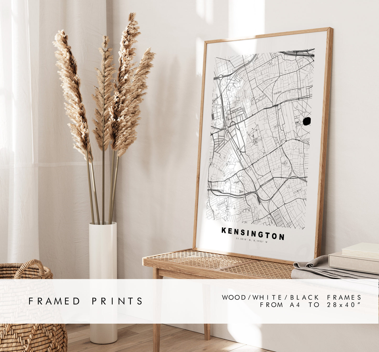 Kensington Map Print - Minimalist City Map Poster - Map Art - London, UK - Kensington Print - Poster - Different Colours Available