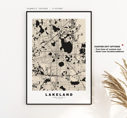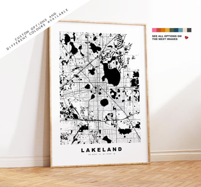Lakeland Map Print - City Map Poster - Map Art - USA City Maps - Lakeland Print - Lakeland Poster - Minimalist City Map - Florida